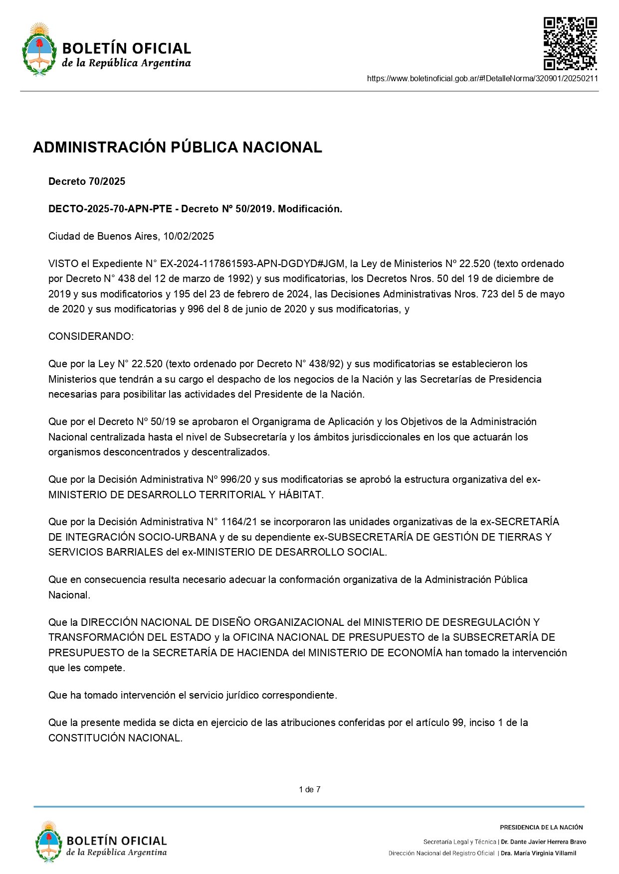 En el decreto, se justifica la medida en que la mayoría de las tareas de la ex Secretaría de Vivienda se desarrollaban a través de tres fondos fiduciarios que actualmente se encuentran disueltos y/o en proceso de disolución. También se definió el pase de la Subsecretaría de Integración Socio Urbana (SISU), a cargo de Sebastián Pareja, y de la Dirección Nacional de Arquitectura, a la órbita de la Secretaría de Obras Públicas del Ministerio de Economía.