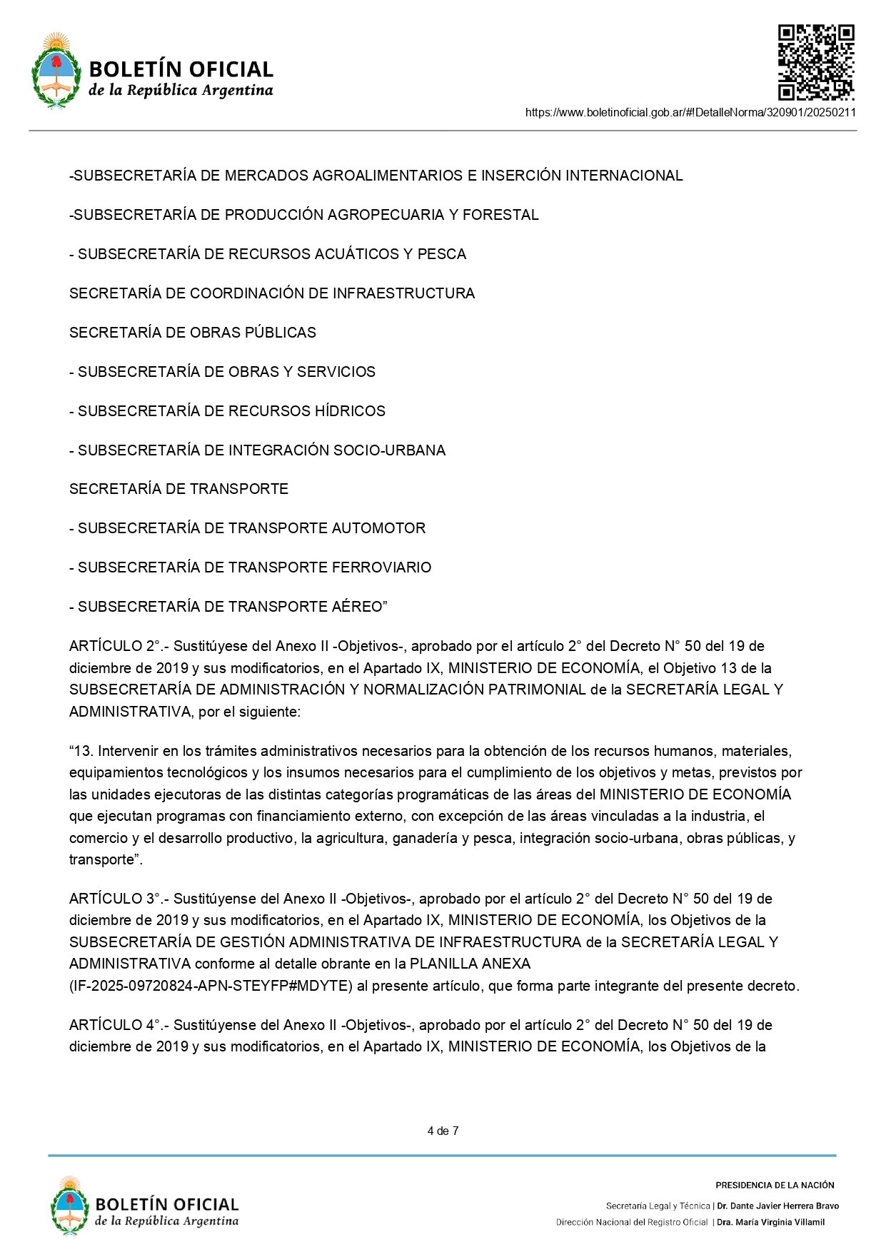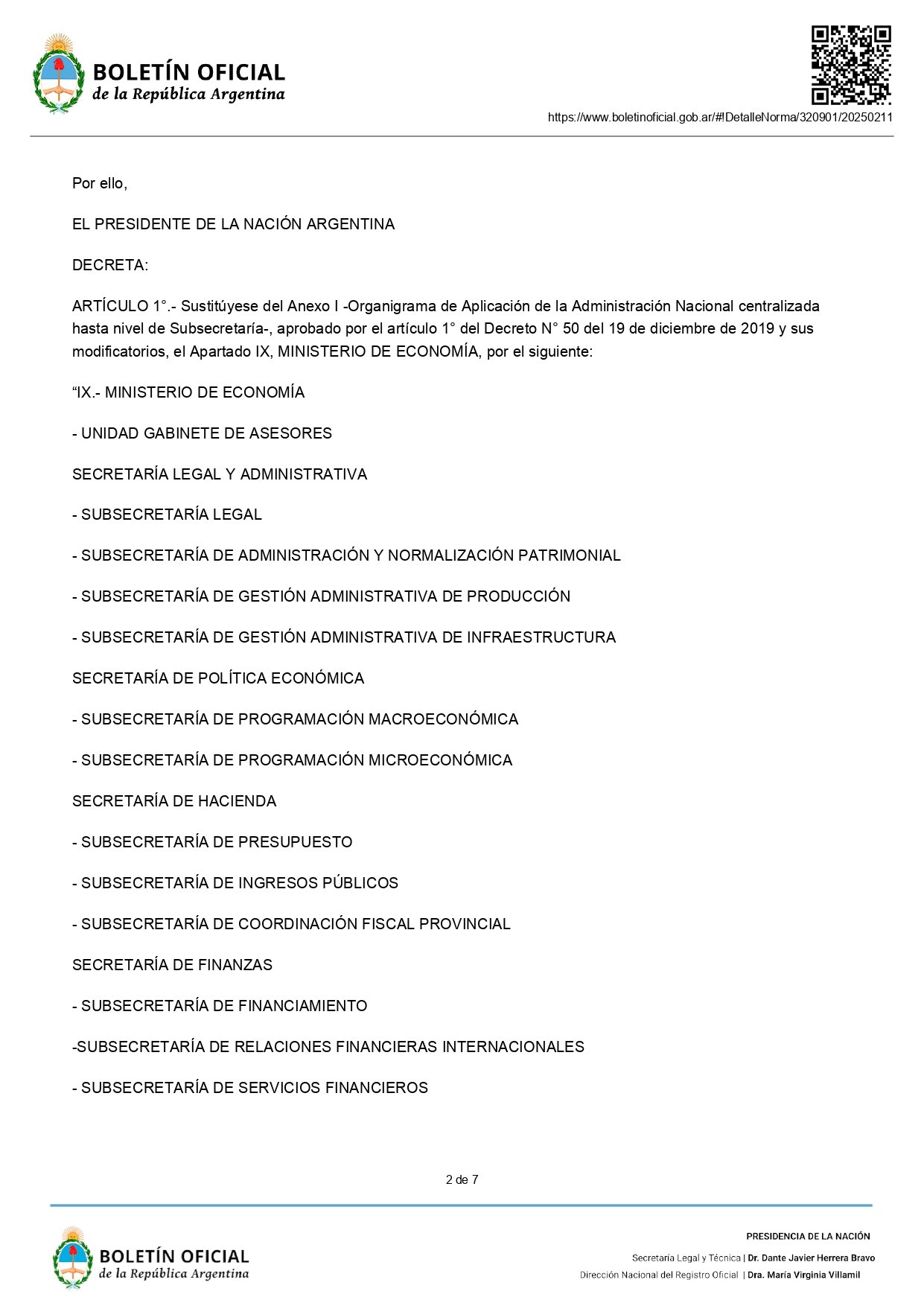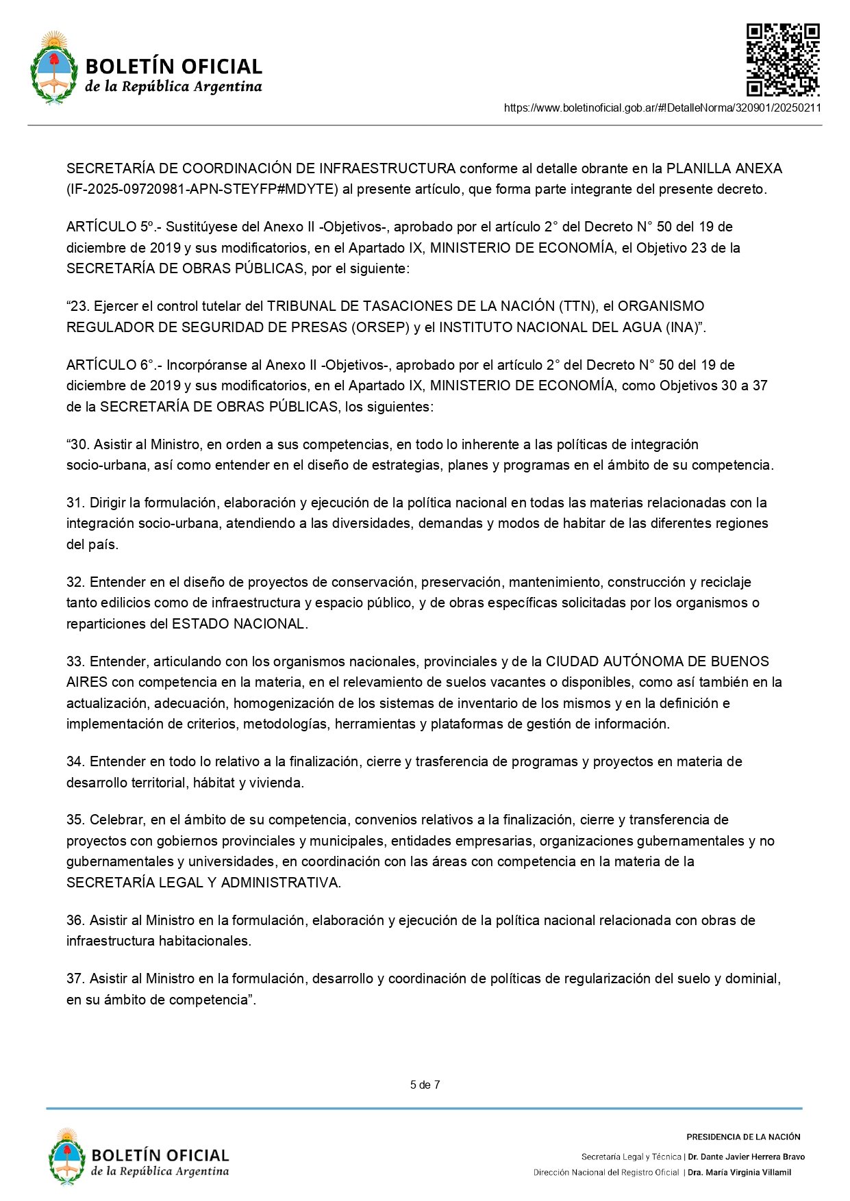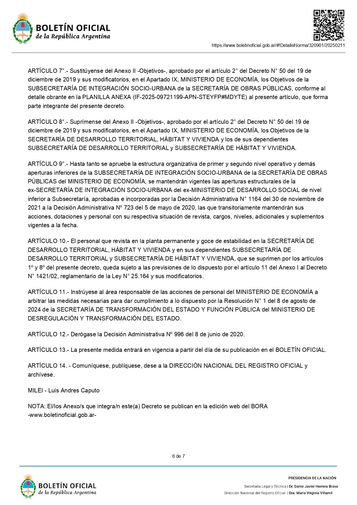 En la norma publicada en el Boletín Oficial, también se definió el pase de la Subsecretaría de Integración Socio Urbana (SISU), a cargo de Sebastián Pareja, y de la Dirección Nacional de Arquitectura, a la órbita de la Secretaría de Obras Públicas del Ministerio de Economía.