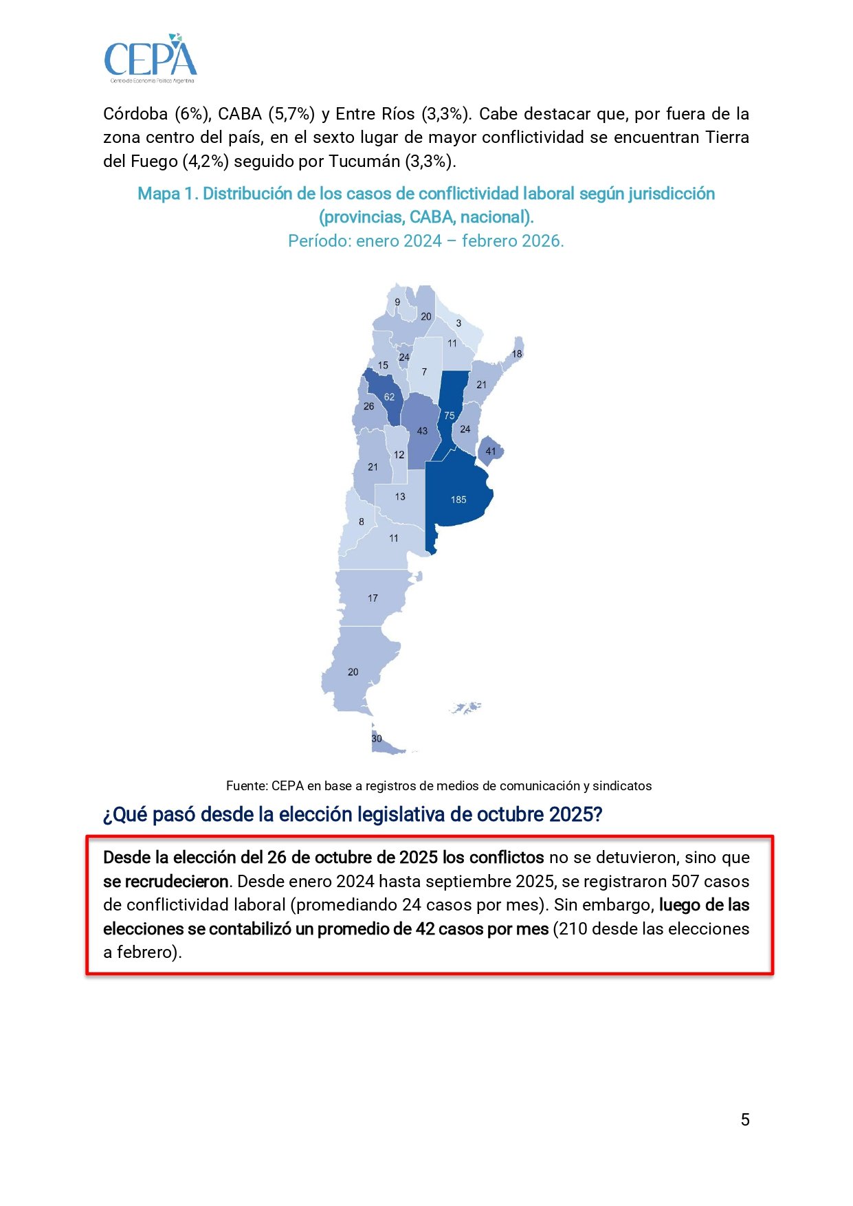 Tras la elección legislativa del 26 de octubre de 2025, lejos de aquietarse, la conflictividad se aceleró. Hasta septiembre de 2025 se habían registrado 507 casos, a un promedio de 24 por mes. Desde la elección hasta febrero, el promedio saltó a 42 mensuales: 210 casos en apenas cuatro meses. La estabilización prometida se tradujo en una curva ascendente de conflictos.