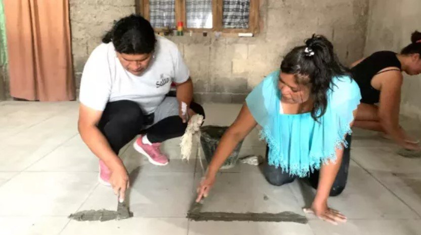 Las futuras ceramistas colocaron el piso del espacio con material proporcionado por la Cerámica Alberdi. Hoy, lo recorrieron autoridades del Gobierno y la empresa.