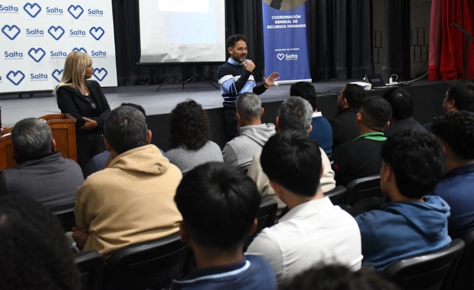 24/04/2025.- Prensa Municipalidad de la Ciudad de Salta.- Foto portada: El Intendente de la Ciudad de Salta hablando con los estudiantes que realizarán sus prácticas profesionales en el Municipio.
