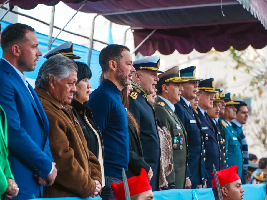 La ceremonia comenzó con el saludo protocolar del jefe comunal a los efectivos formados y a la Agrupación “25 de Mayo”. A continuación, se entonaron las estrofas del Himno Nacional Argentino y la Marcha de las Malvinas, interpretadas por la banda de música municipal.