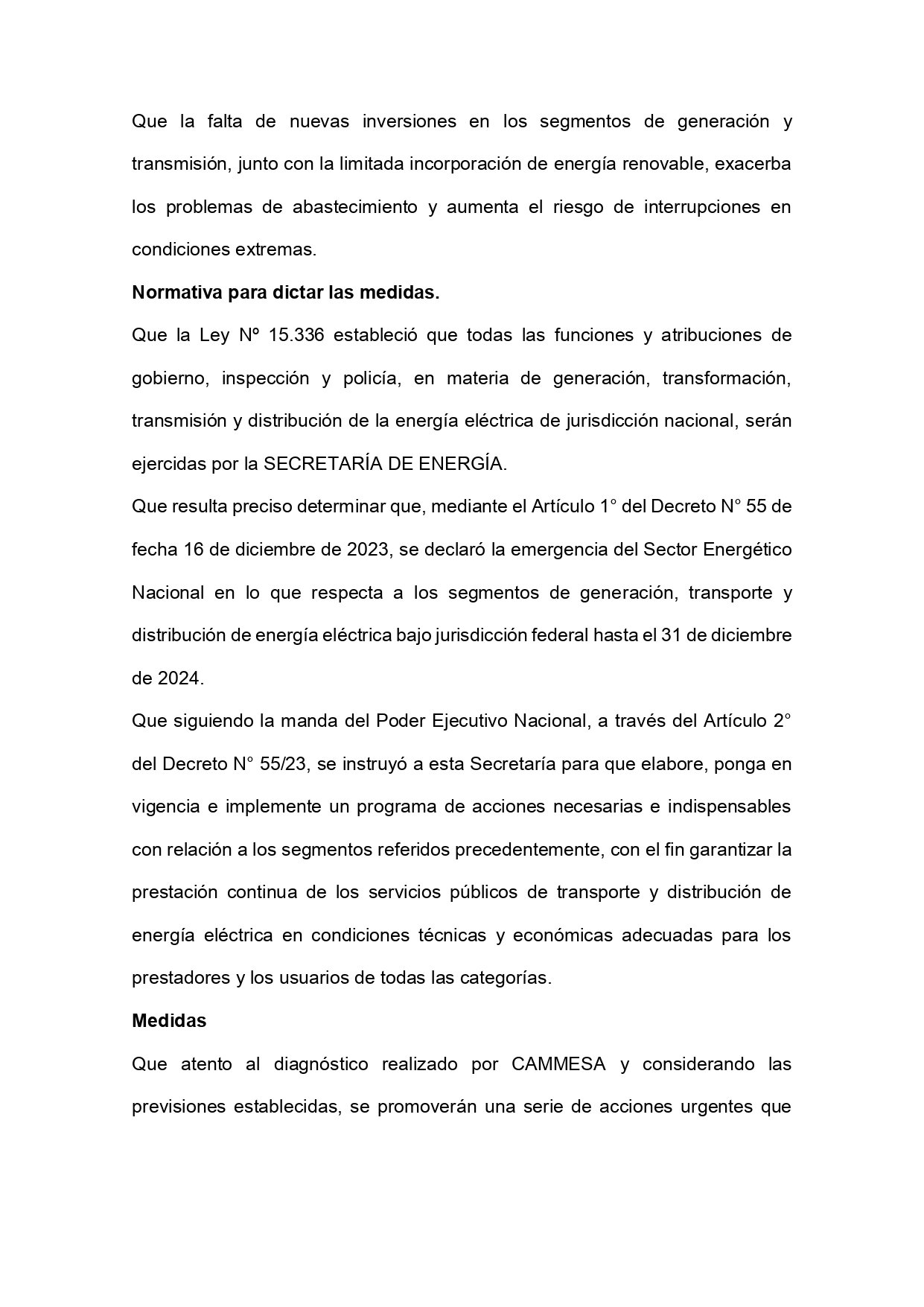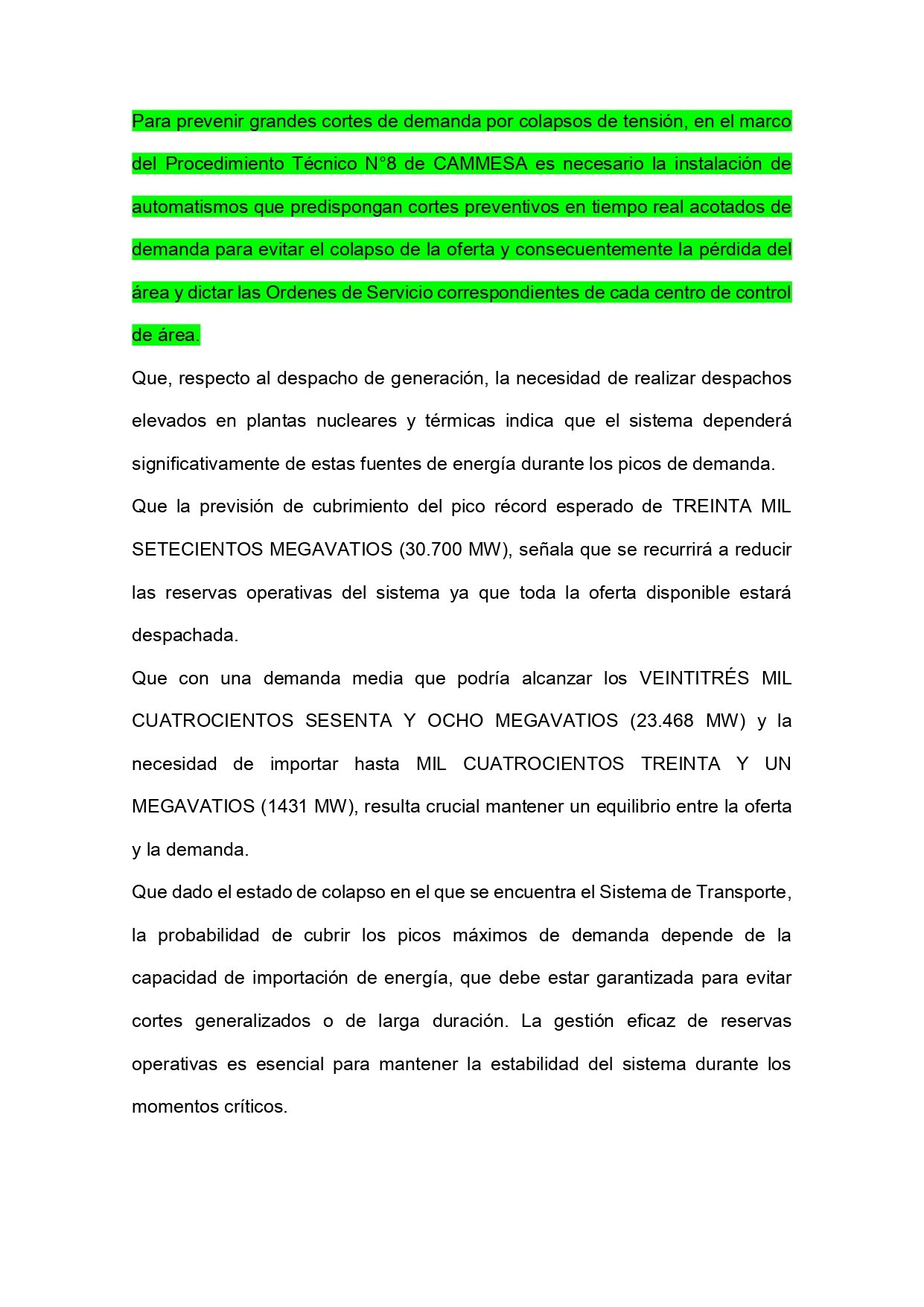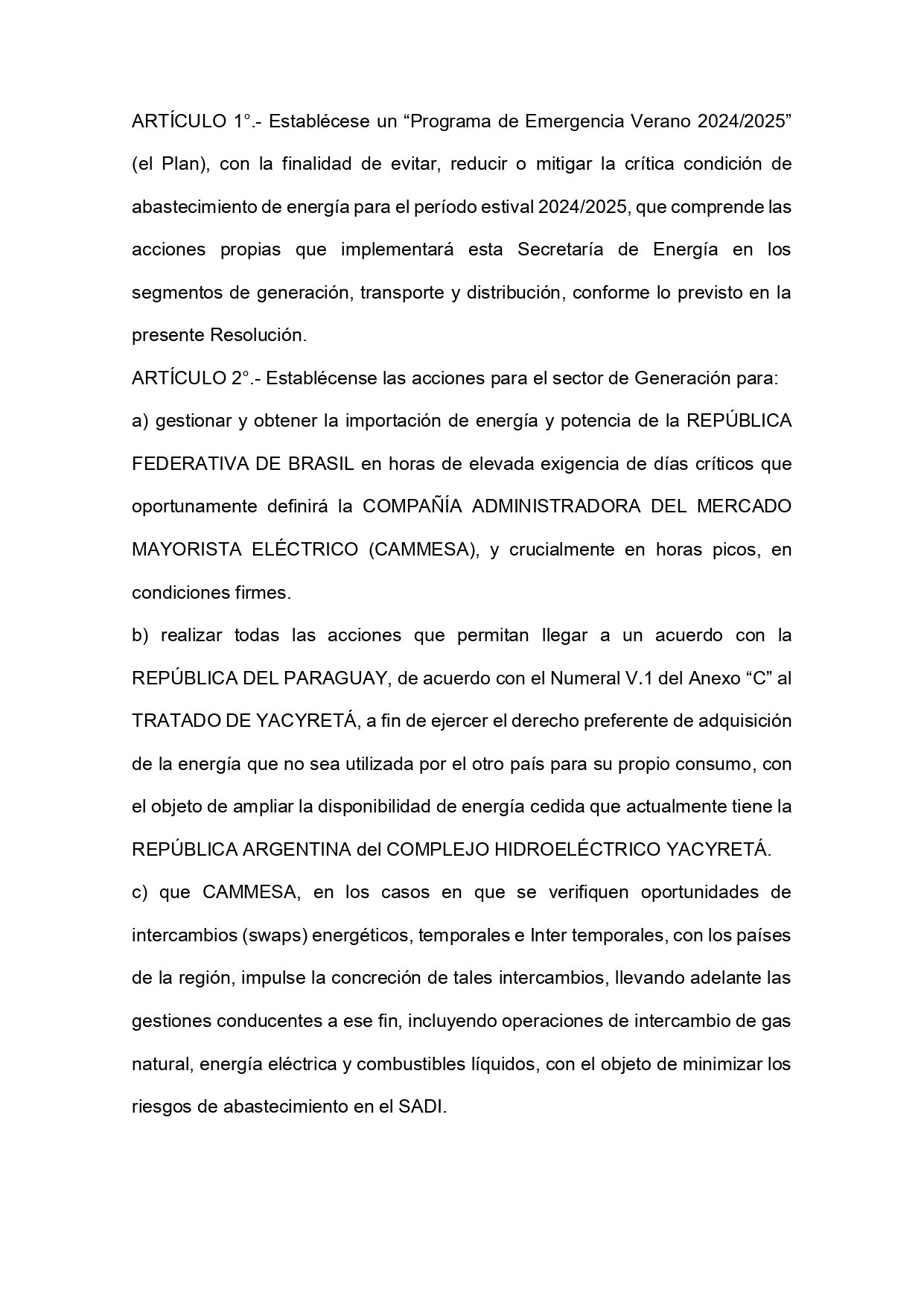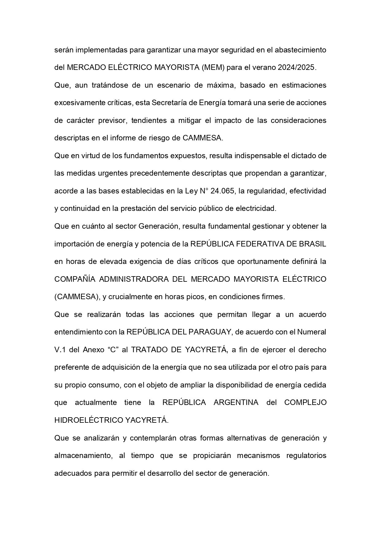 Actualmente la potencia instalada en la Argentina alcanza los 43.788 MW a julio de 2024, pero según la secretaria de Energía «la potencia disponible dista de la potencia instalada desde hace varios años a estar parte» argumentan en el borrador de la resolución.