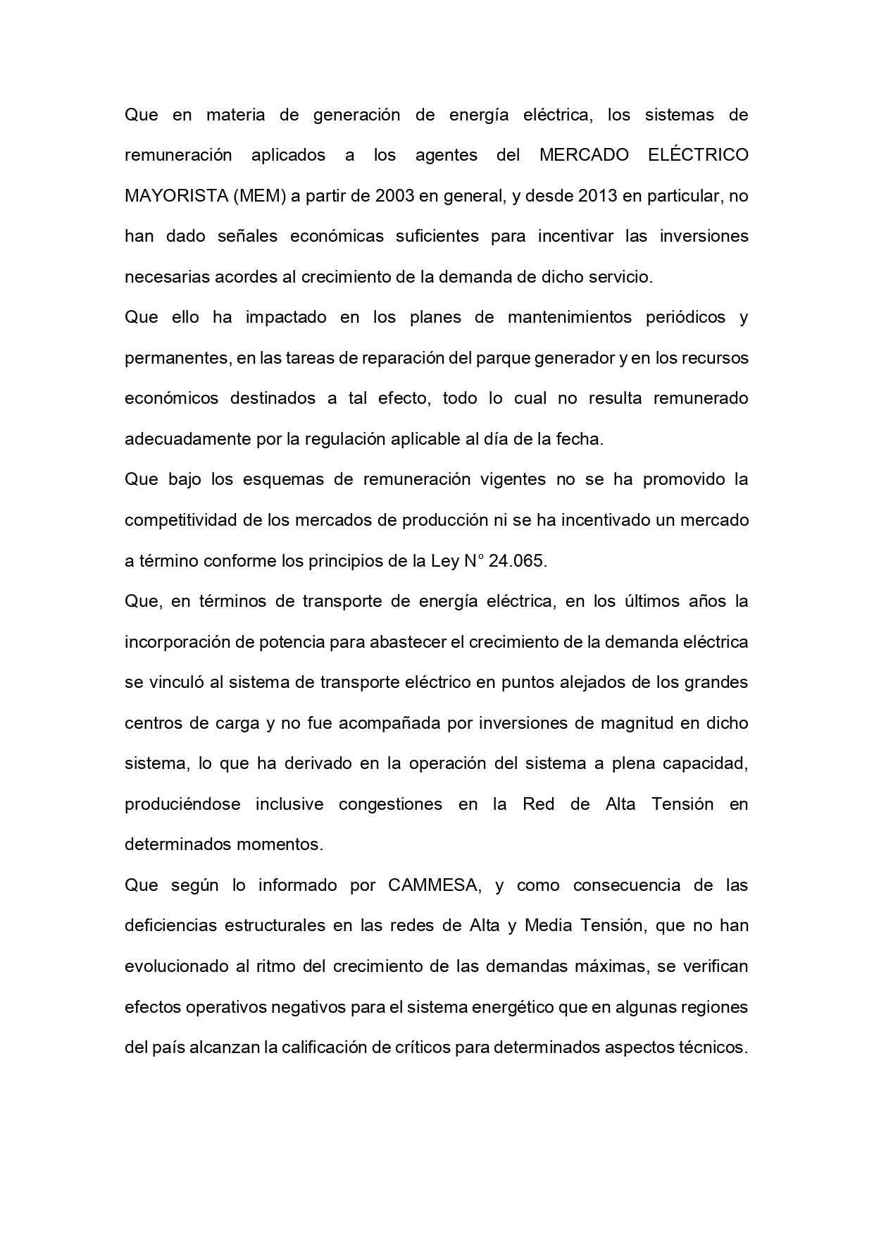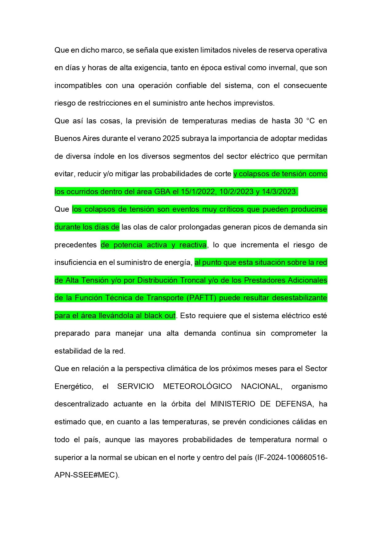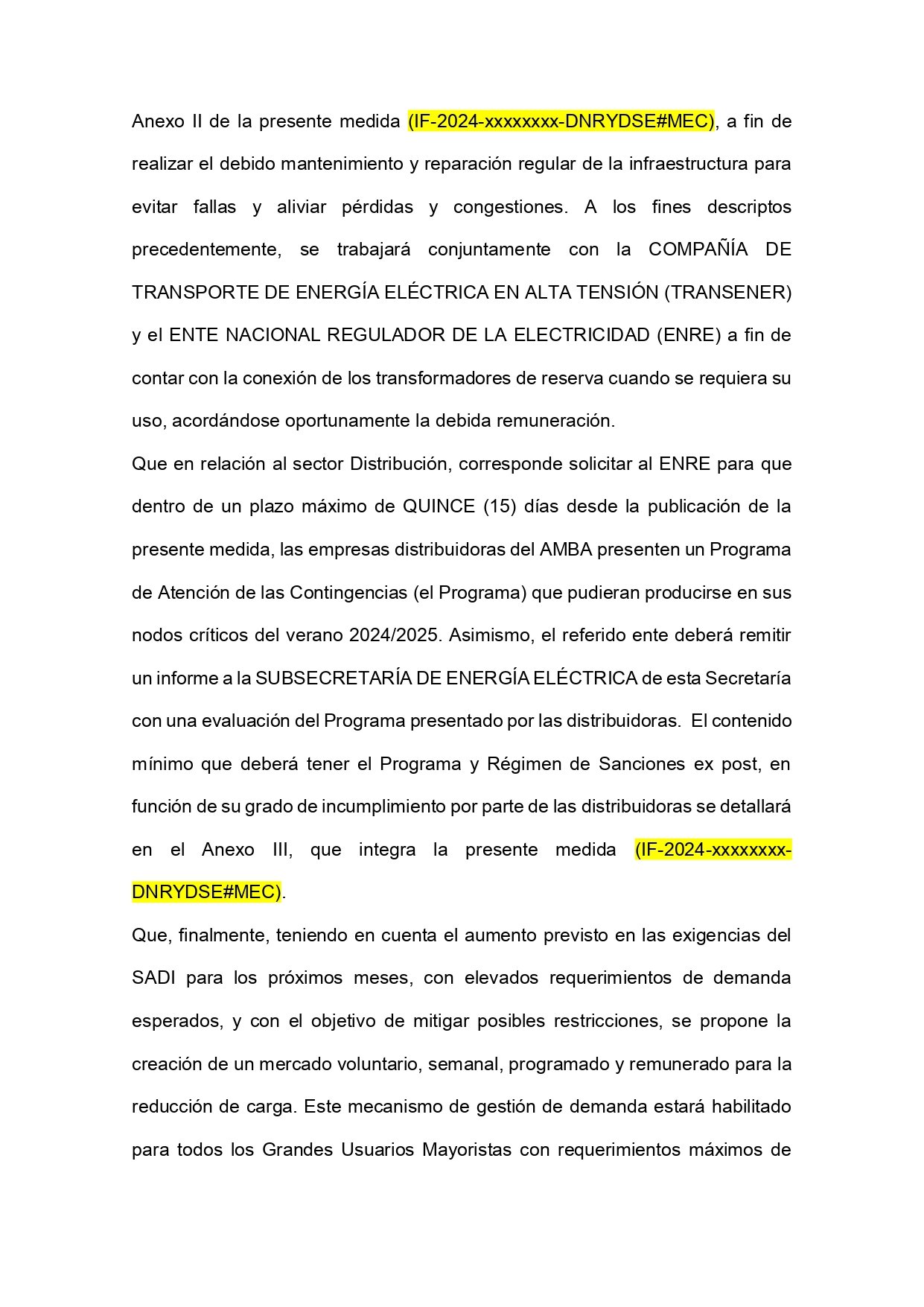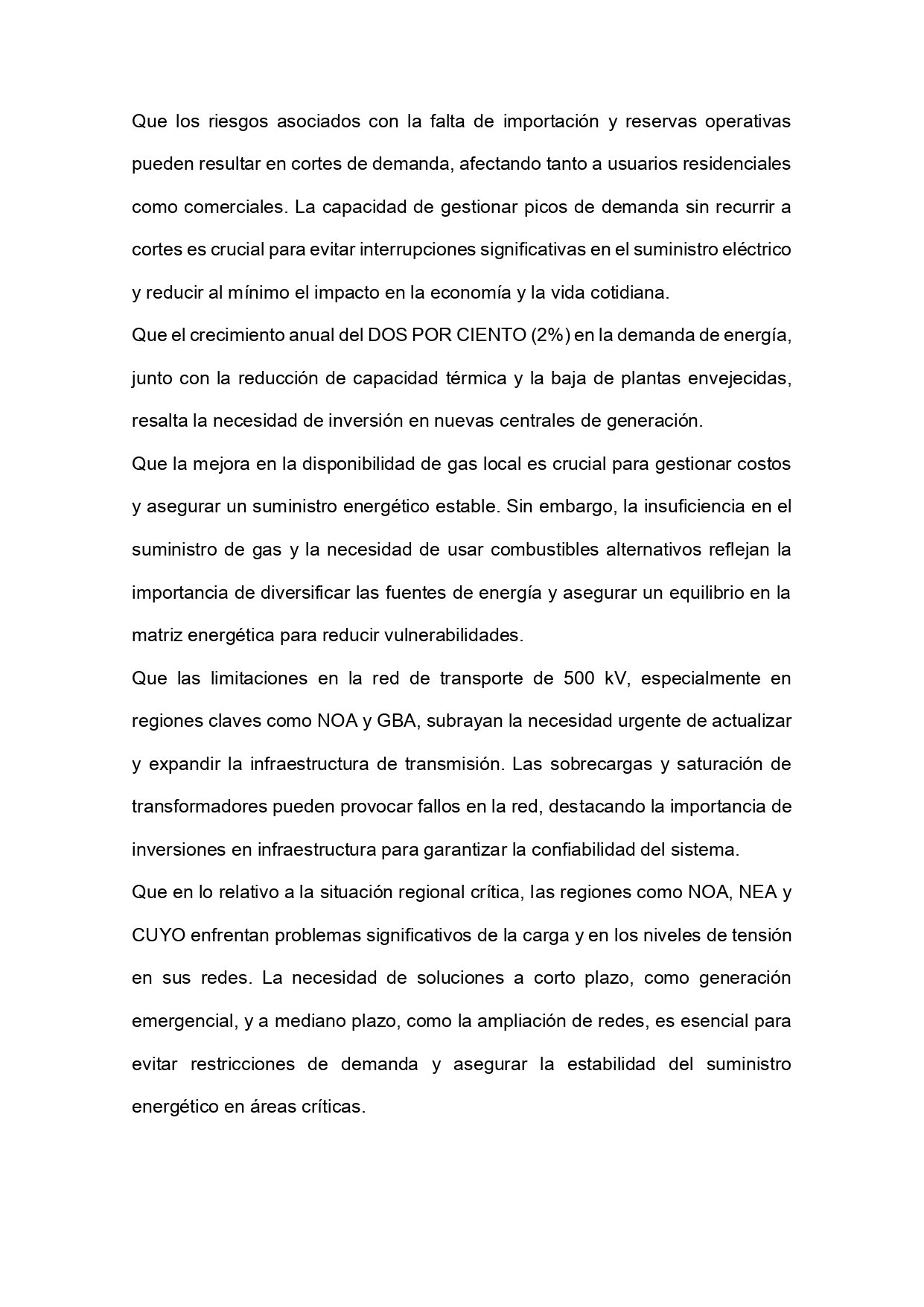 Actualmente la potencia instalada en la Argentina alcanza los 43.788 MW a julio de 2024, pero según la secretaria de Energía «la potencia disponible dista de la potencia instalada desde hace varios años a estar parte» argumentan en el borrador de la resolución.