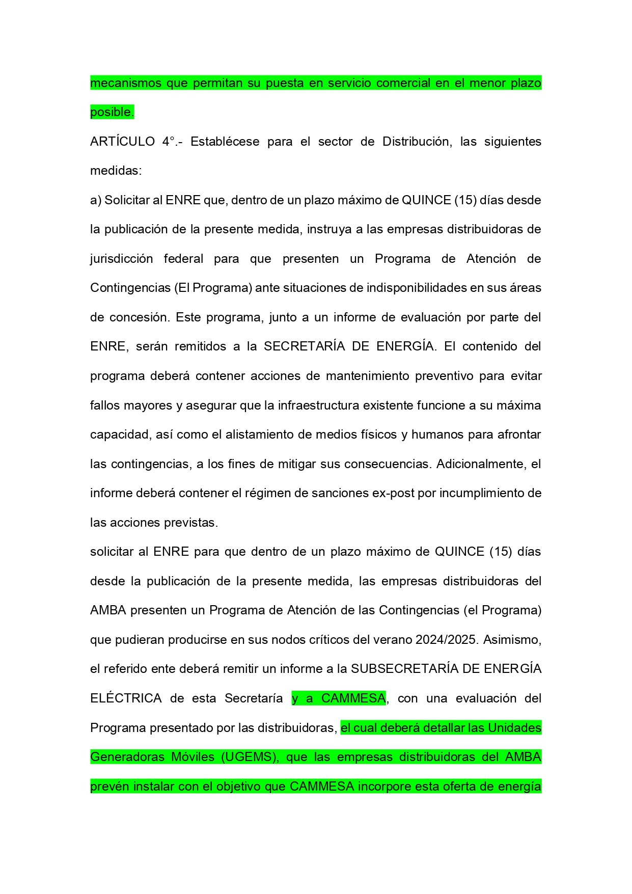 A partir de eso, lejos de encarar una renovación integral del sistema, la resolución de la secretaría de Energía promueve que las distribuidoras, que son más de 600 en todo el país, coloquen Unidades Generadoras Móviles (UGEMS) con el objetivo que Cammesa incorpore esta oferta de energía en la programación del despacho, tanto estacional como mensual y semanal. El gran interrogante es como se va fiscalizar esa oferta de energía. «Nadie sabe cuanto van a pedir las distribuidoras por estos megas ni tampoco se sabe como se va a comprobar que estan aportando lo que declaran», concluyó la fuente consultada.