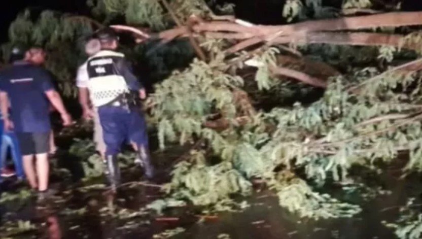 Desde la tarde se registraron fuertes tormentas y ráfagas de viento que ocasionaron la caída de árboles y postes de servicios públicos. También voladura de techos.