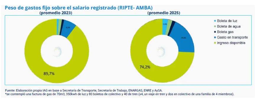 La pérdida de poder adquisitivo se combina con una transformación en la estructura del gasto. El incremento de tarifas y precios regulados impactó de manera directa en el ingreso disponible. Desde el cambio de gobierno, los servicios públicos y el transporte registraron aumentos significativos, impulsados por la reducción de subsidios y el ajuste en los precios relativos.