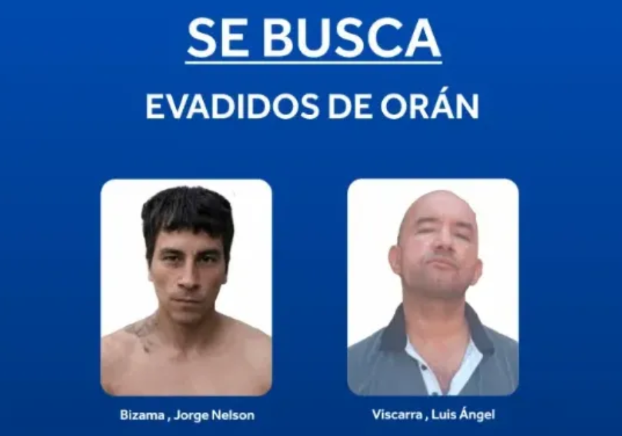 La fuga se registró el domingo por la madrugada cuando tres detenidos lograron evadirse de la Comisaría Primera de Orán, según confirmó la fuerza provincial. Los evadidos fueron identificados como Ernesto Damián Miranda (31), Jorge Nelson Bizama (31) y Luis Ángel Vizcarra (46).