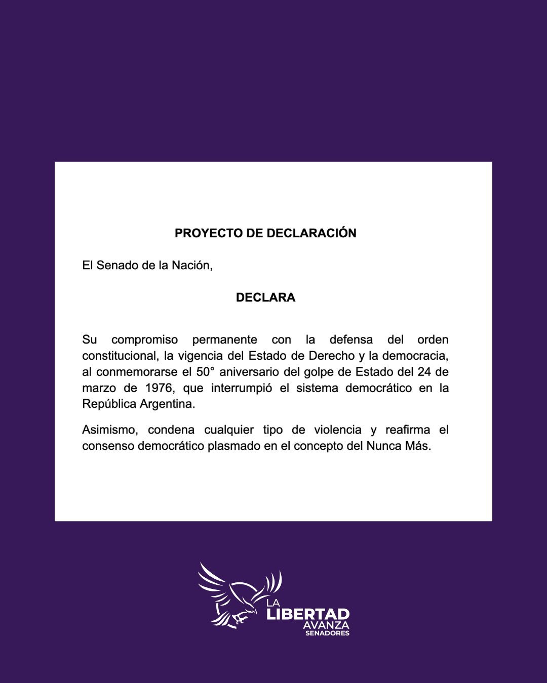 El proyecto había sido impulsado para reafirmar el compromiso institucional del Congreso con las políticas de memoria a pocos días del 24 de marzo, fecha que recuerda el inicio del terrorismo de Estado en la Argentina. Mientras la mayoría de los bloques respaldó la iniciativa, el oficialismo libertario se abstuvo y dejó en evidencia su distancia con ese consenso histórico.