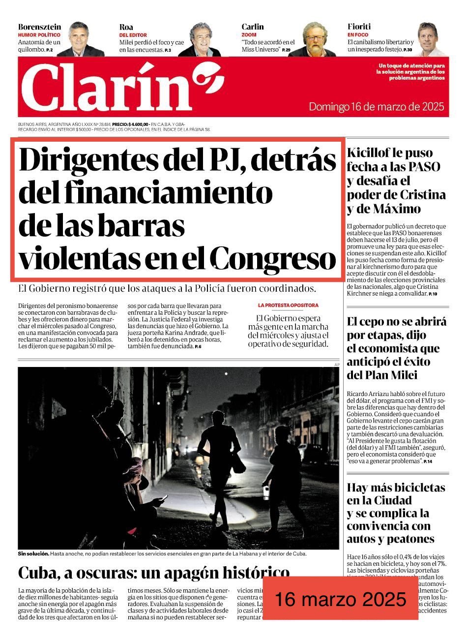 El PJ hizo un posteo en el que denuncia una «desvergonzada campaña de desinformación y mentiras» del diario Clarín contra dirigentes del peronismo, a los que viene acusando de estar detrás de los incidentes en la marcha de jubilados.