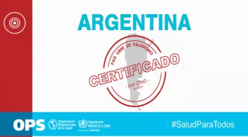 En la Argentina, desde el año 2010 no se han producido casos autóctonos de paludismo y en mayo de 2019 la Organización Mundial de la Salud (OMS) certificó al país como libre de la enfermedad.