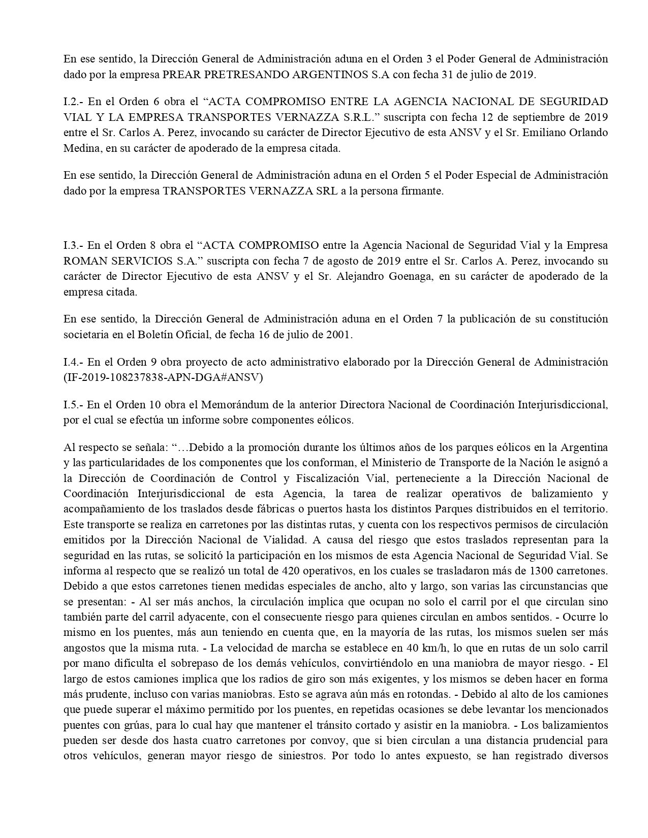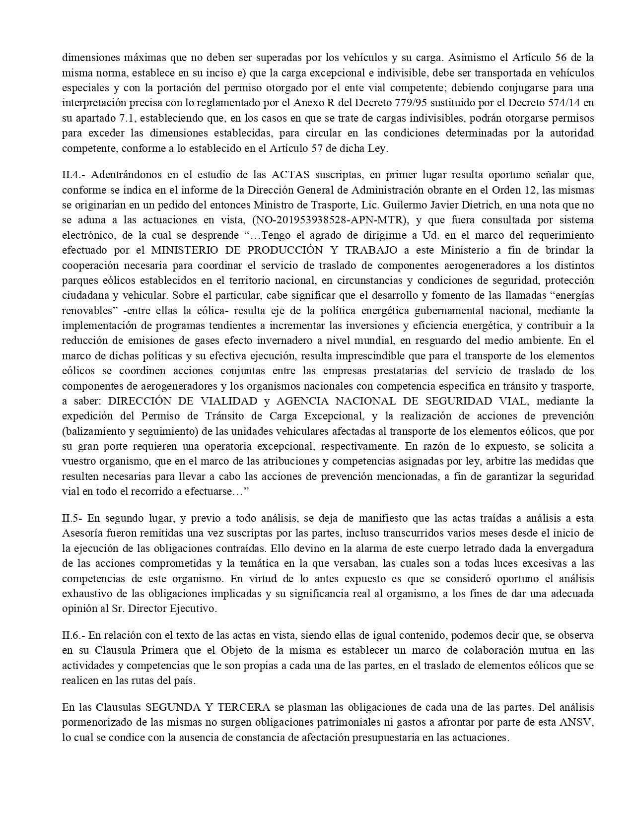 «El desarrollo y fomento de las llamadas ‘energías renovables’ -entre ellas la eólica- resulta eje de la política energética gubernamental nacional, mediante la implementación de programas tendientes a incrementar las inversiones y eficiencia energética», explica Dietrich en una nota dirigida a Carlos Alberto Pérez donde justifica la intervención de la ANSV.
