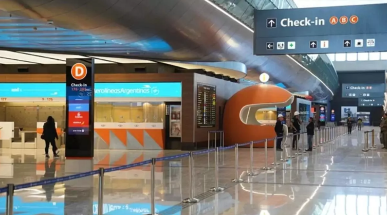 23/05/2025.- www.eldiarioar.com.- Foto portada: Paran controladores aéreos y habrá vuelos internacionales afectados el sábado y de cabotaje el domingo. Imagen de uno de los halls del Aeropuerto Internacional de Ezeiza. Imagen: