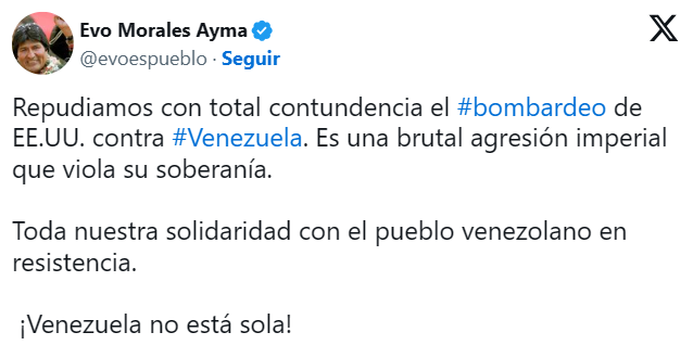 El expresidente boliviano Evo Morales no maquilló palabras: calificó el ataque como “una brutal agresión imperial que viola la soberanía del pueblo venezolano” y alertó sobre el peligro de normalizar este tipo de intervenciones armadas.