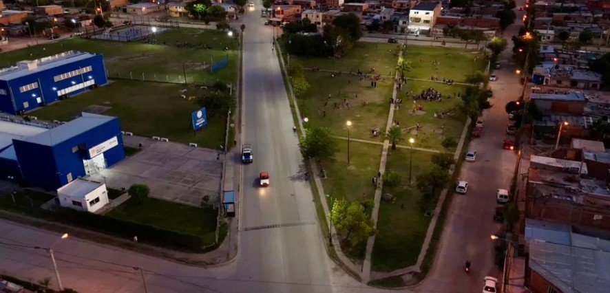 Con la presencia del intendente, Emiliano Durand, quedaron habilitadas las nuevas luminarias en la plaza San Benito, ubicada en la intersección de avenida Discépolo y G. Mors.