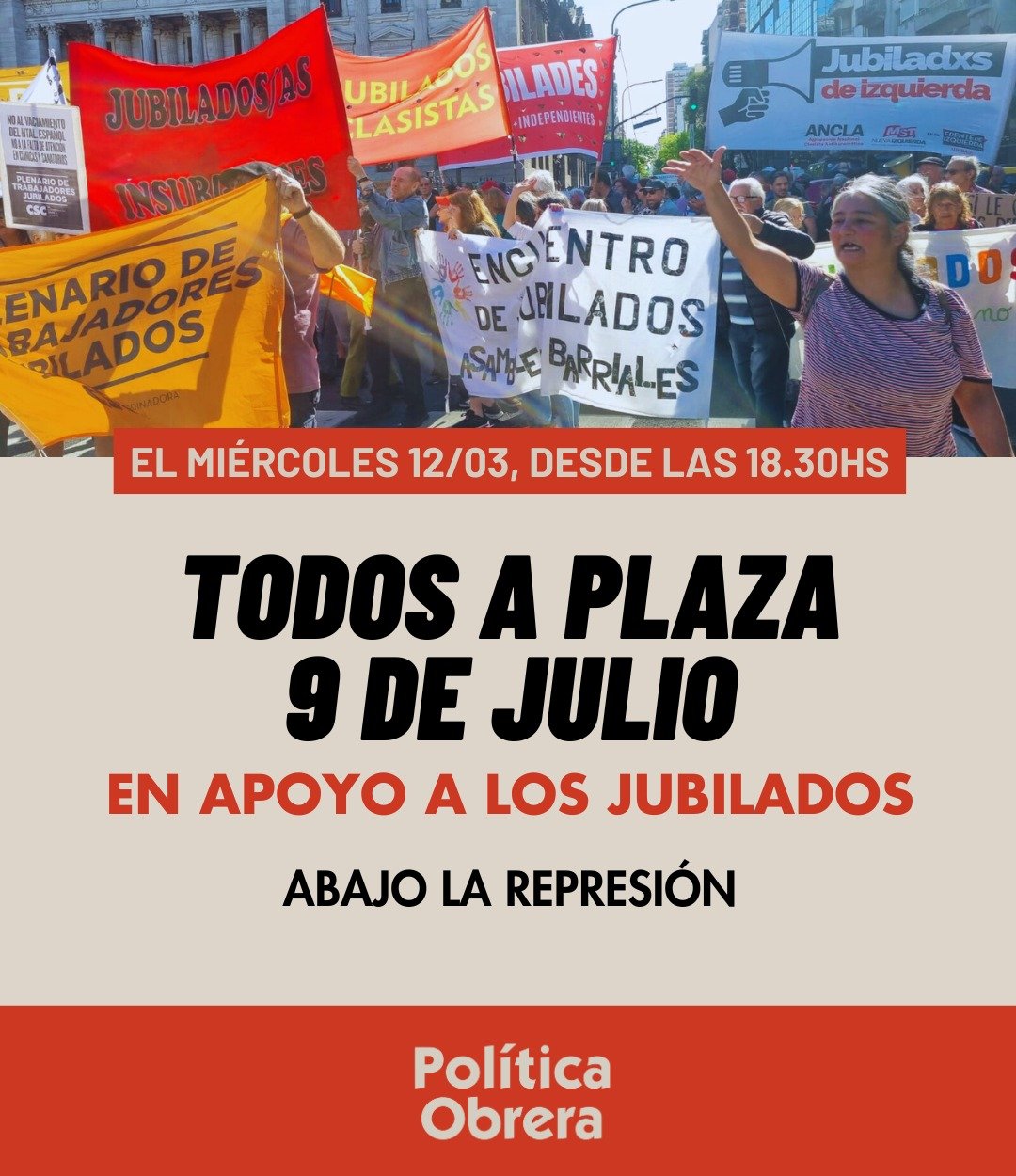 Desde Política Obrera, llamamos a acompañar a nuestros viejos, que están demostrando una alta conciencia social y democrática, ya que sus reivindicaciones serán las de todos en algún momento de nuestras vidas y además se han puesto a la cabeza de defender el derecho a la protesta y a ocupar las calles por sus reclamos sociales, una cuestión decisiva para el progreso del pueblo trabajador.