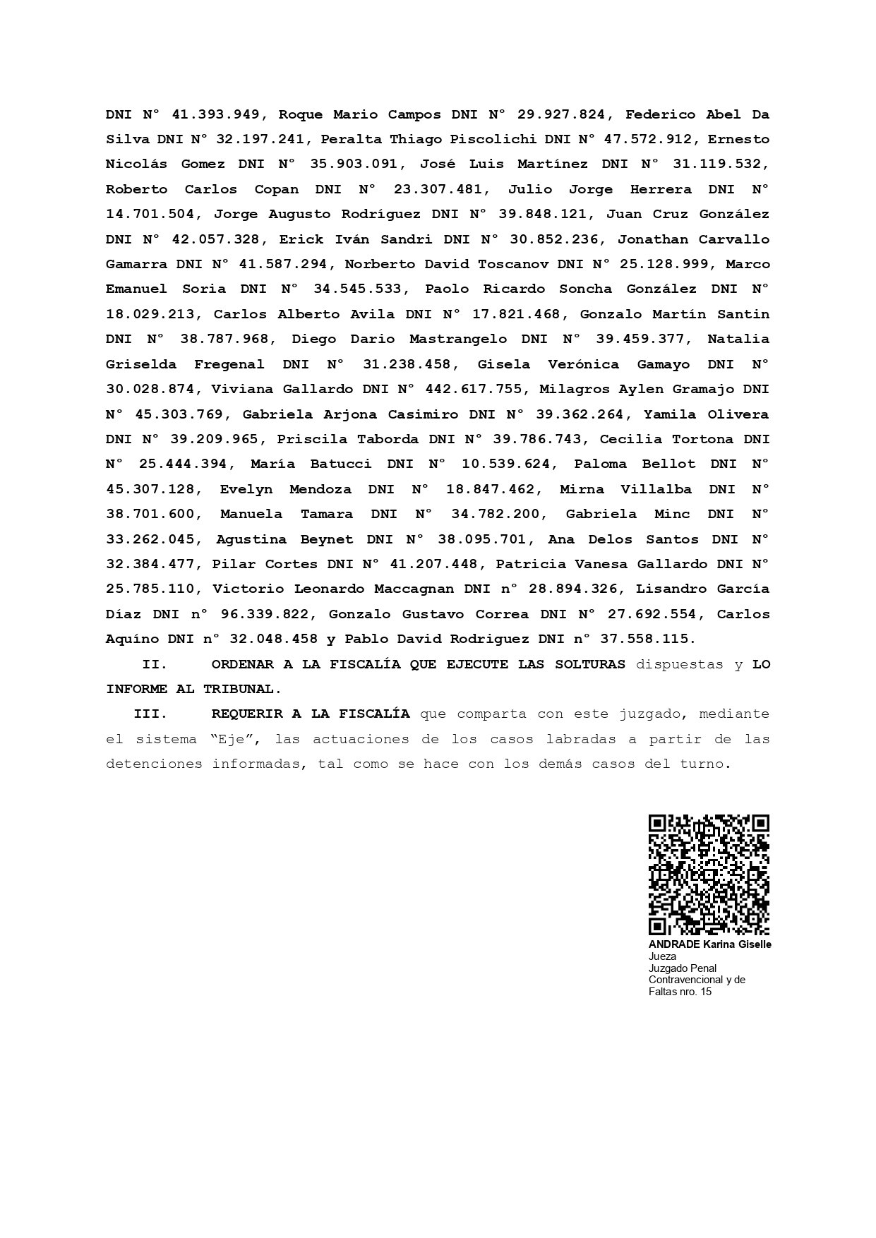 La jueza porteña Karina Andrade ordenó esta madrugada la liberación de los 114 detenidos durante la represión en las inmediaciones del Congreso, en un fallo con lapidarias críticas al operativo policial de las fuerzas que conduce Patricia Bullrich. El gobierno le respondió con trolls y buscaría iniciarle un expediente en el Consejo de la Magistratura de la Ciudad.