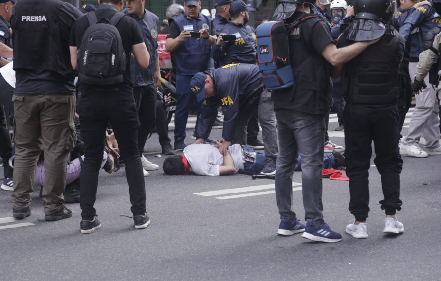 La represión se desató cuando los efectivos policiales quisieron evitar que los manifestantes interrumpieran el tránsito en la Avenida Rivadavia, tal como pide el protocolo antipiquetes diseñado por Bullrich y companía. Allí se vivió el momento de mayor tensión y la Policía atacó tanto los manifestantes como a distintos trabajadores de prensa que estaban cubriendo la marcha.