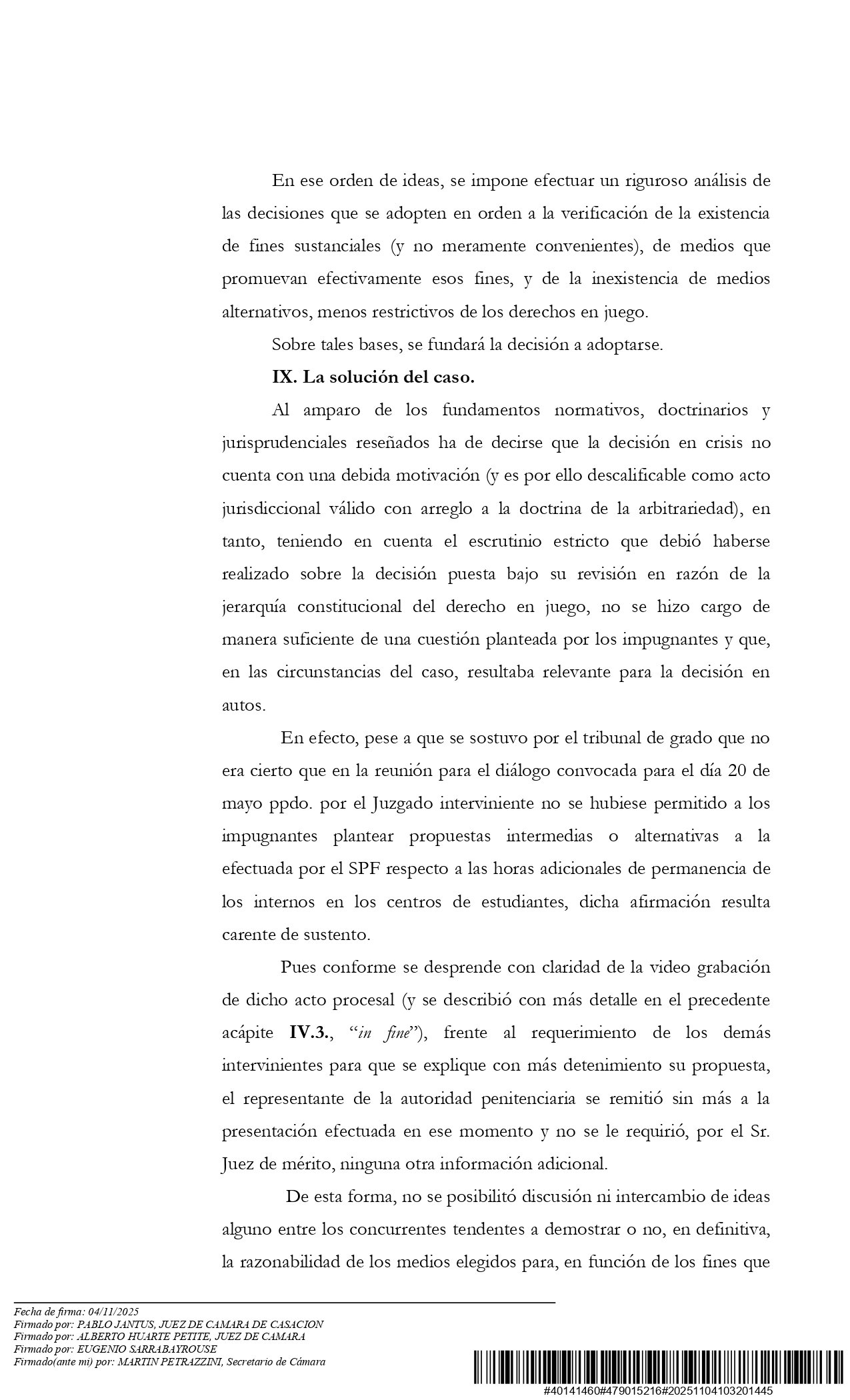 F y el Ministerio en cumplir con las instancias de diálogo que el juez de primera instancia había ordenado, decidió autorizar y dejar firme la propuesta restrictiva de la autoridad penitenciaria.