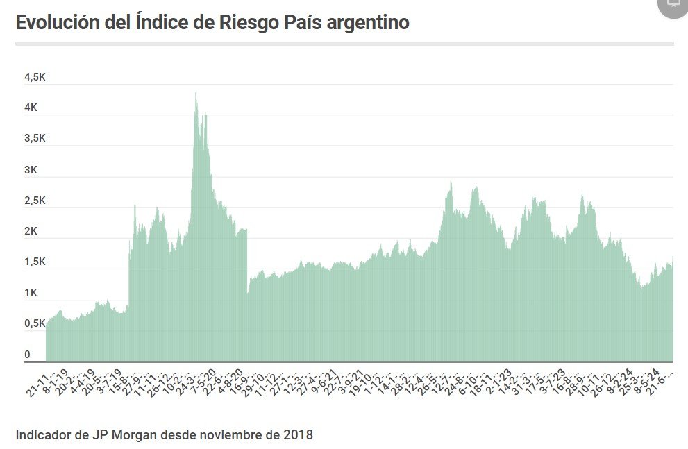 RIESGO PAÍS SUPERA LOS 1.700, LAS ACCIONES CAEN