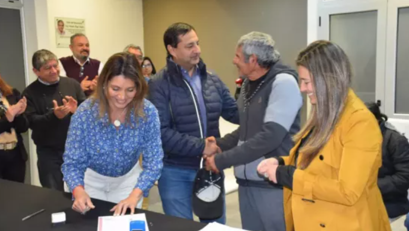 La presidente del Instituto Provincial de Vivienda, Laura Caballero, encabezó en el municipio de Rosario de la Frontera la firma de escrituras de viviendas entregadas en esa localidad. El acto legal se realizó ante la escribana adjunta de Gobierno, Laura Anna, y en presencia del intendente, Kuldeep Singh.