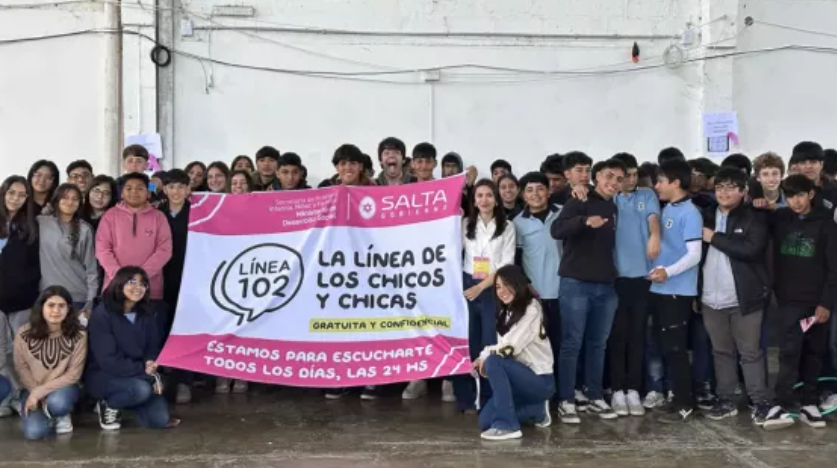 El Ministerio de Desarrollo Social a través de la Secretaría de Primera Infancia, Niñez y Familia difunde el servicio telefónico de escucha exclusivo para niñas, niños y adolescentes LINEA 102 en todo el territorio provincial. En esta oportunidad, se vivió una jornada de conversación, reflexión y participación junto a 115 estudiantes de la Escuela Técnica N°3132; el Colegio Educativo San José N°8173 y el Colegio Secundario República de Colombia N°5097 de Rosario de la Frontera.
