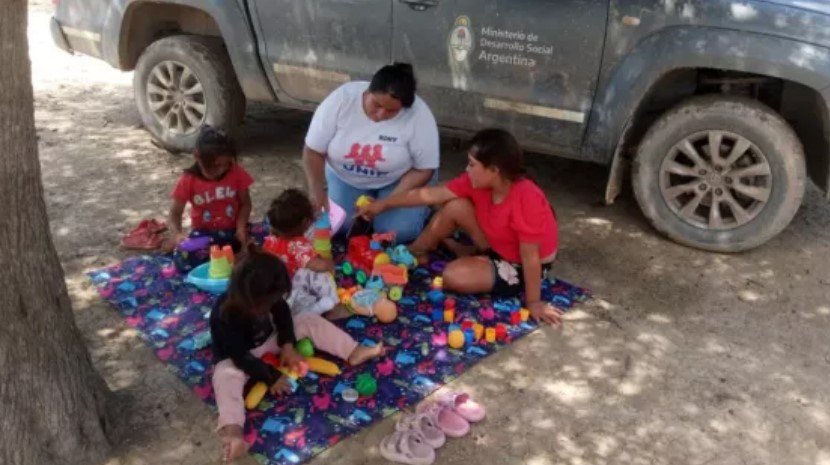 La secretaria de Primera Infancia, Niñez y Familia, Carina Iradi, acompaña la jornada de abordaje de gestión del riesgo en infancias y familias de las comunidades de La Estrella y La Gracia. A través de la presencia en territorio de agentes del Plan UNIR, la Secretaría perteneciente al Ministerio de Desarrollo Social realiza intervenciones para la gestión del riesgo en población infantil de familias afectadas por la crecida del Río Pilcomayo. Acompañantes Familiares territoriales se encuentran realizando un relevamiento y diagnóstico en base al estado de situación de las familias con niñas y niños pequeños y también se propondrán actividades lúdicas.