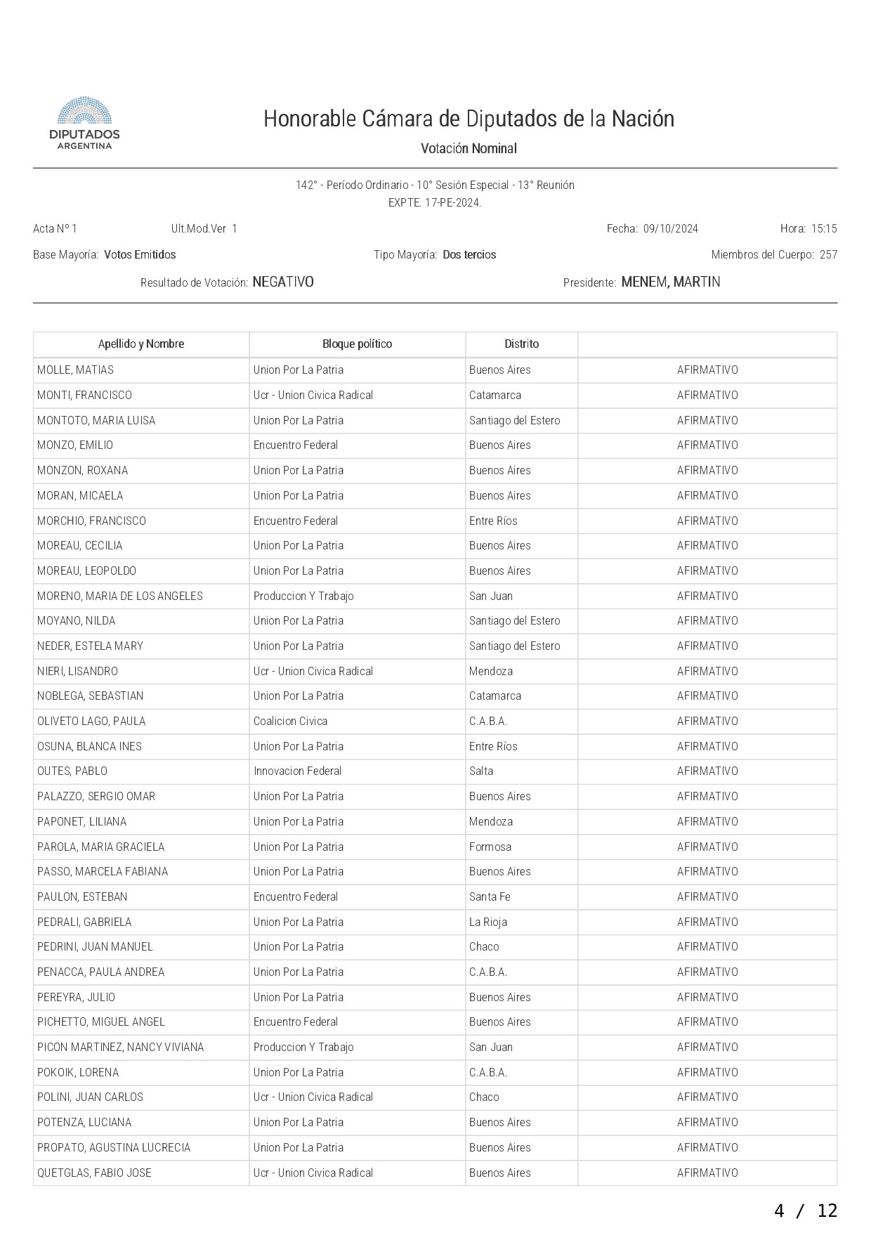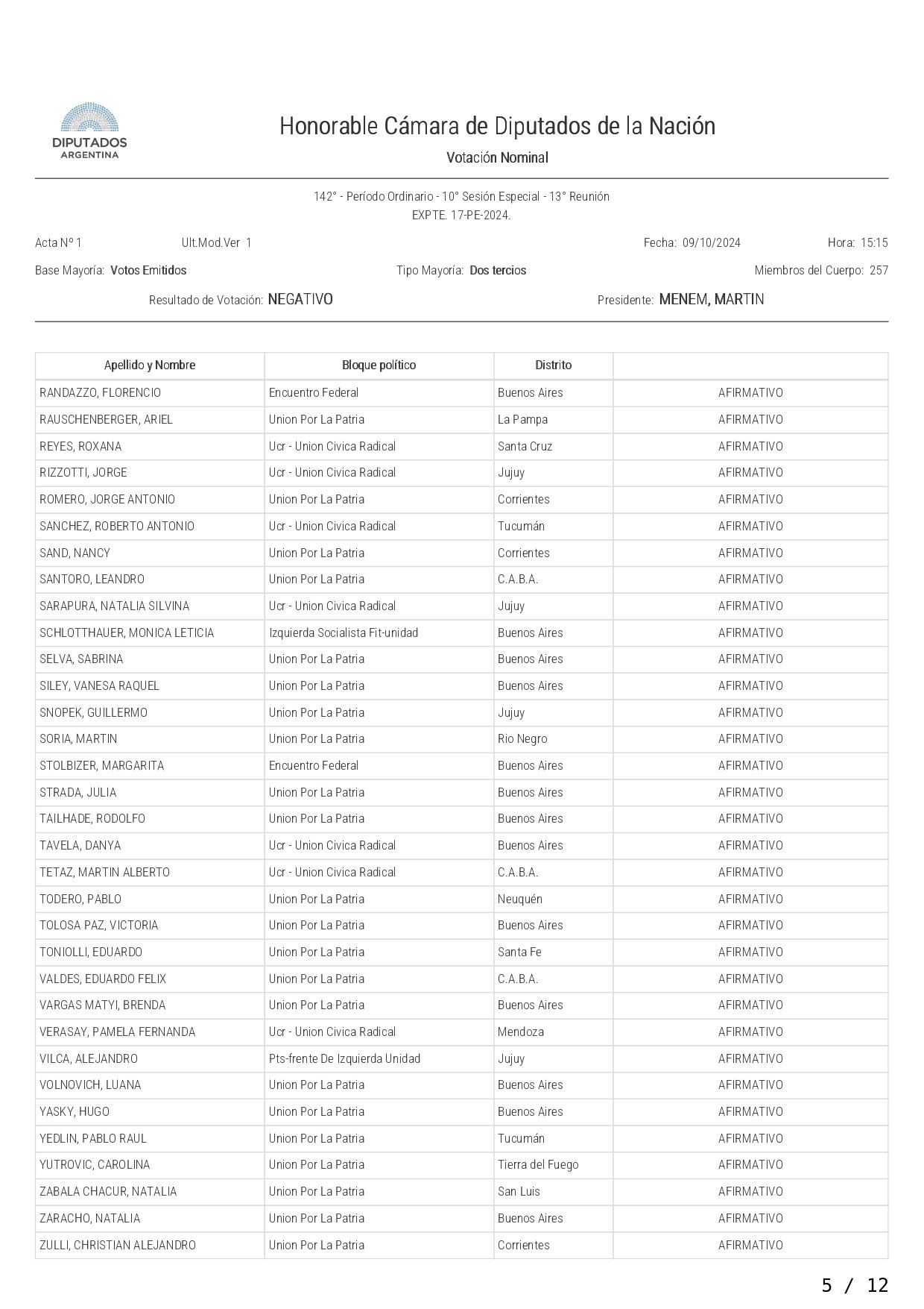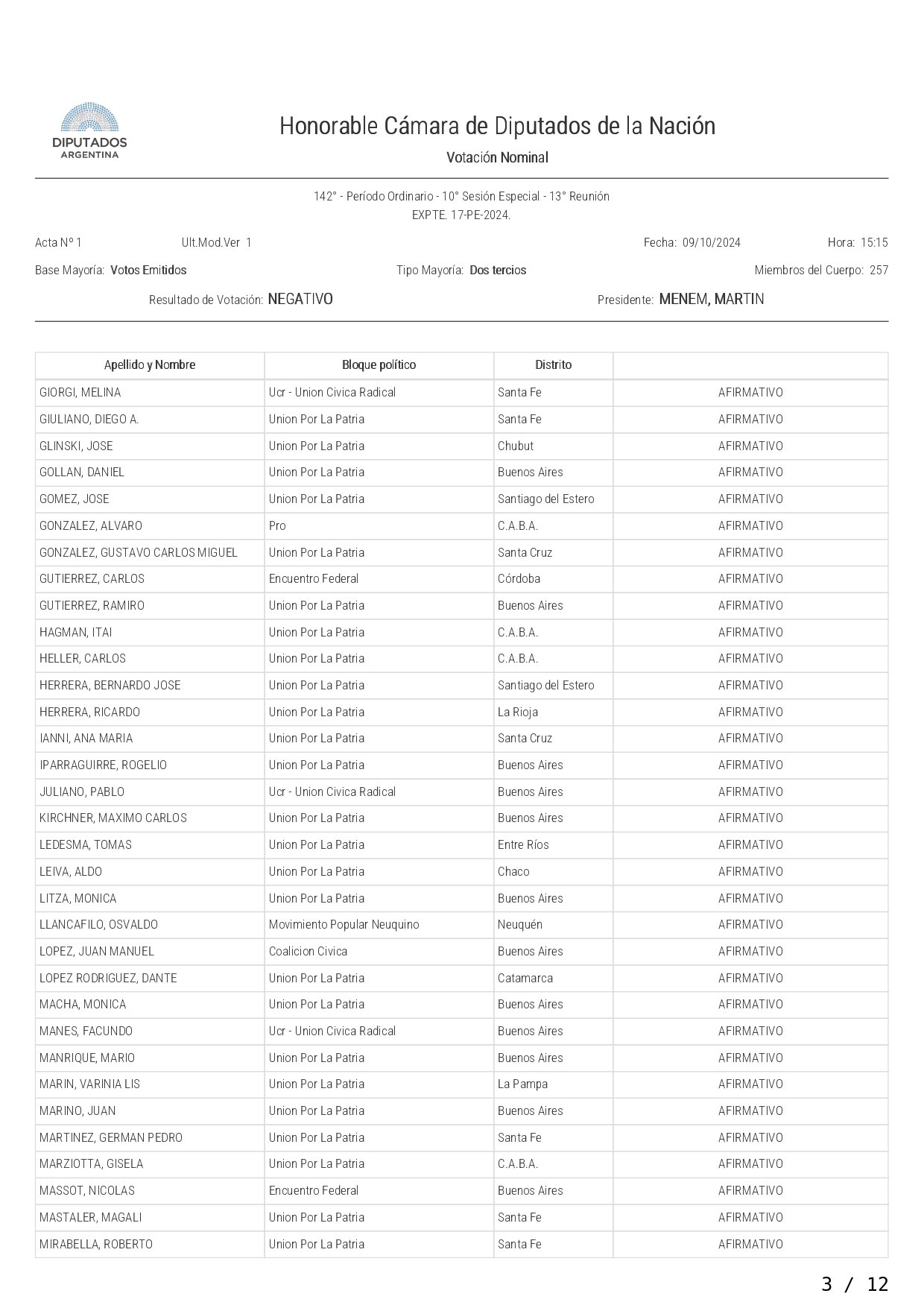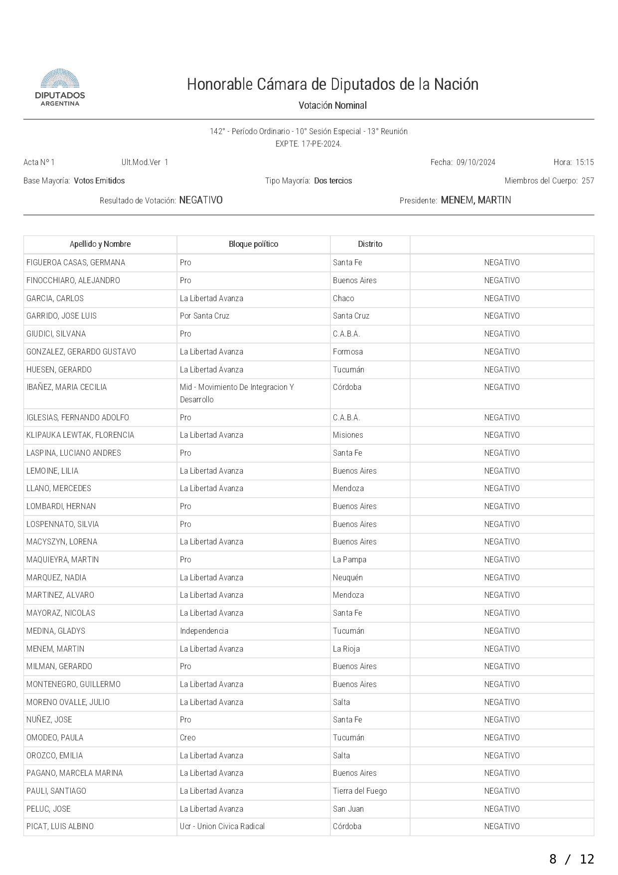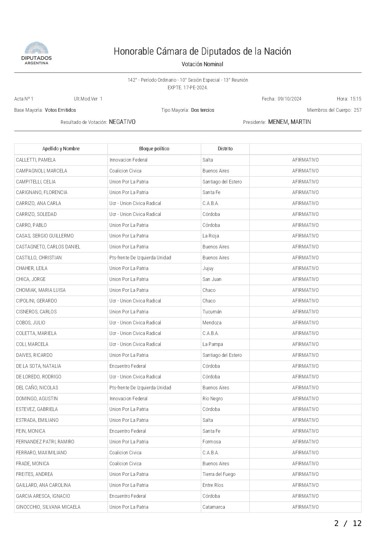 Antes del debate en el Congreso, el PRO ya había adelantado su apoyo a la decisión presidencial y los espacios Unión por la Patria y Encuentro Federal su rechazo al veto. En tanto, el Gobierno había anunciado que si el veto era rechazado iba a judicializar la ley.