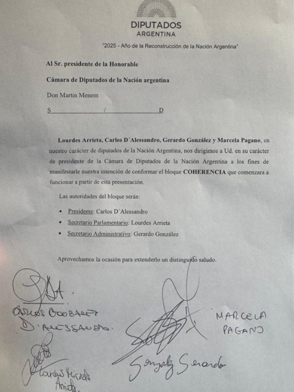 Este miércoles, el bloque de La Libertad Avanza en Diputados sufrió un cimbronazo: cuatro diputados decidieron separarse y formar un nuevo espacio, al que llamaron «Coherencia». Más que un gesto de independencia, la movida busca marcar distancia de la conducción que maneja Martín Menem dentro del bloque. La ruptura deja al descubierto las tensiones internas de LLA y evidencia que, detrás de las formalidades, la lealtad al partido y a sus liderazgos está en duda.