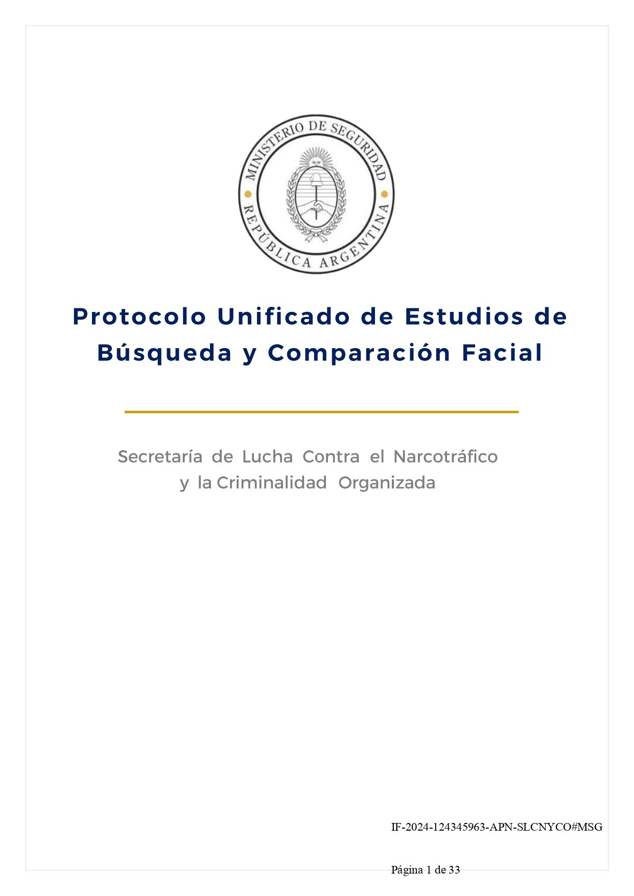 Con la Resolución 1234/2024, el Ministerio de Seguridad de Argentina implementó un protocolo unificado para el uso de esta tecnología en las fuerzas policiales y de seguridad federales, como la Gendarmería Nacional y la Policía Federal Argentina. Este protocolo tiene como objetivo asegurar que todos los organismos trabajen con los mismos criterios y procedimientos, garantizando así mayor coherencia y eficacia en el uso del reconocimiento facial.