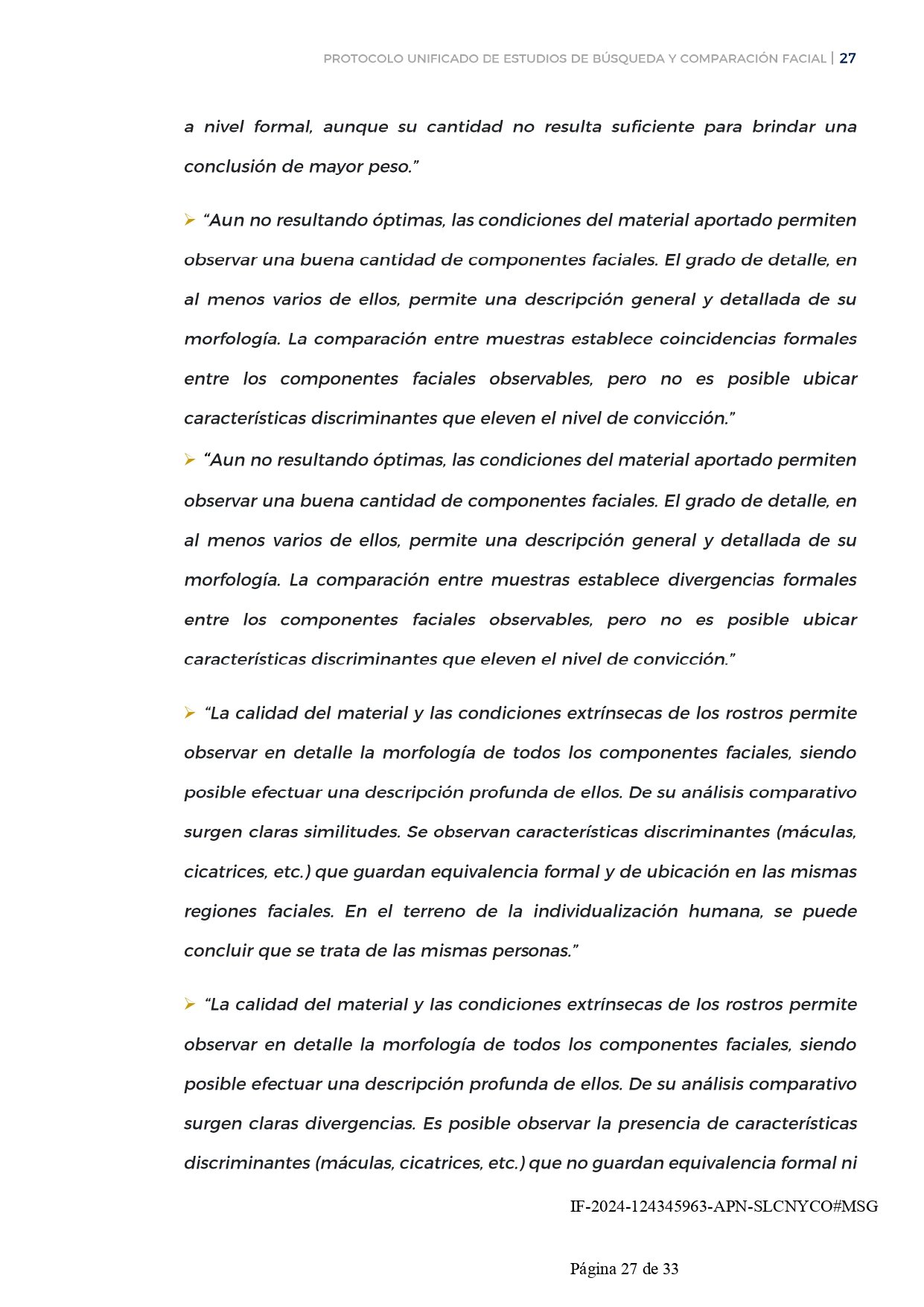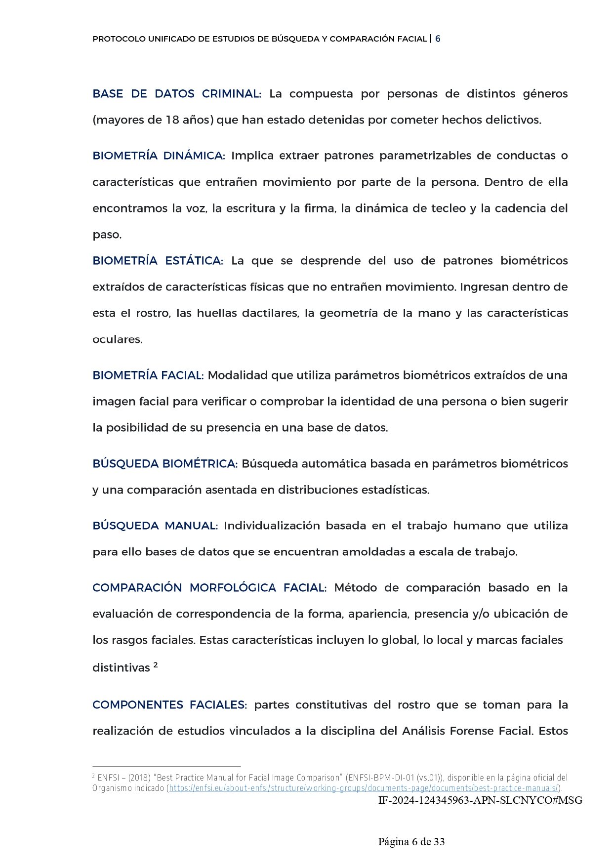 Uno de los aspectos más destacables de este protocolo es su alineación con estándares internacionales. La resolución menciona que el protocolo se basó en guías y manuales de buenas prácticas internacionales, como el «Best Practice Manual for Facial Image Comparison» del ENFSI (European Network of Forensic Science Institutes). Esta guía establece cómo deben llevarse a cabo las comparaciones de imágenes faciales de manera técnica y precisa, lo cual contribuye a garantizar que el proceso sea fiable y esté libre de sesgos o errores humanos.