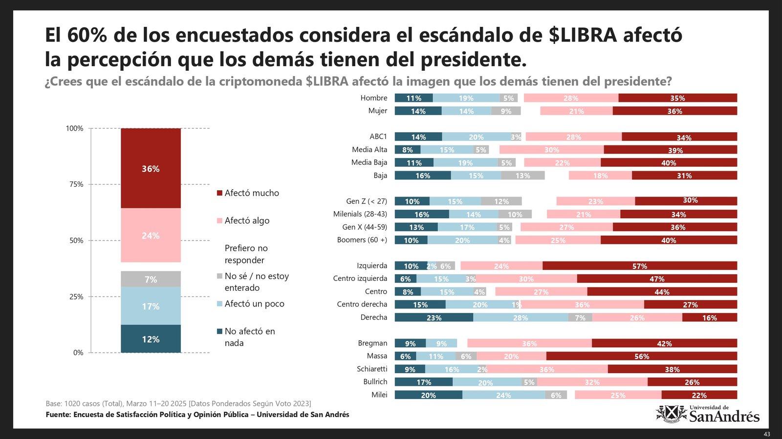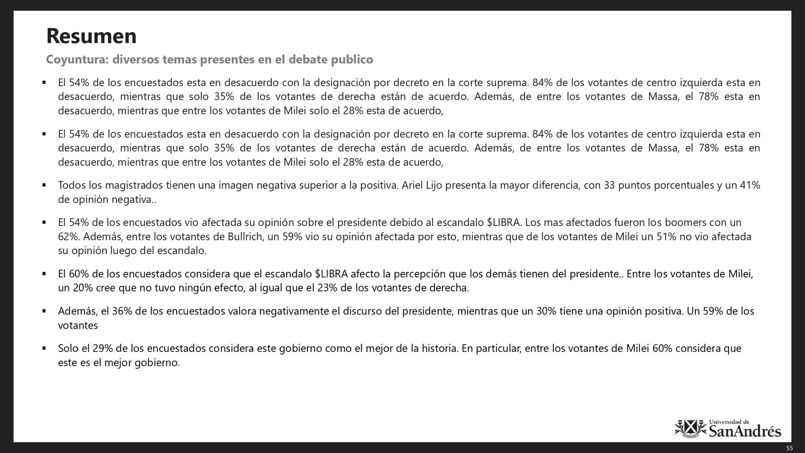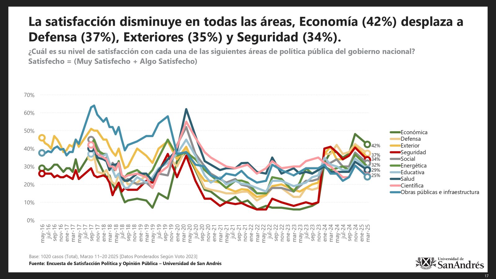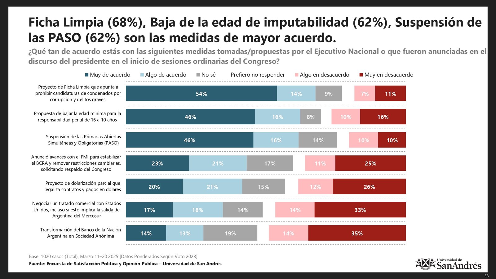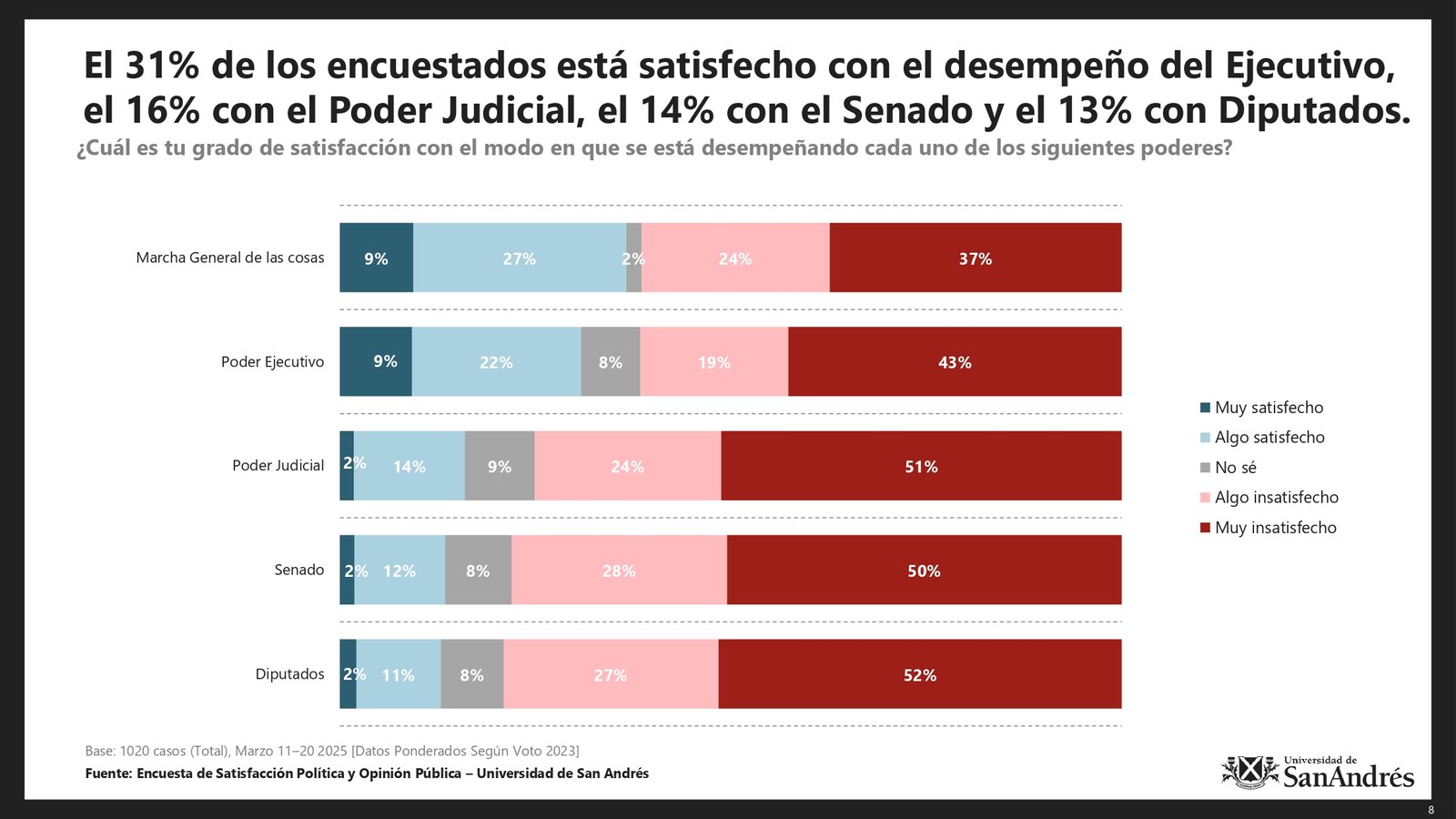 Un estudio de la Universidad de San Andrés muestra que Milei debe revertir un 61% de insatisfacción con su gobierno.