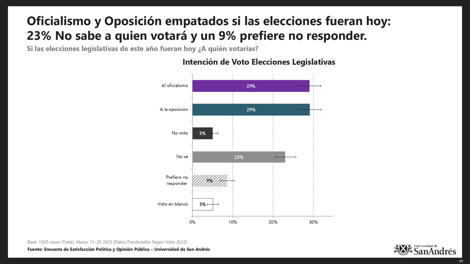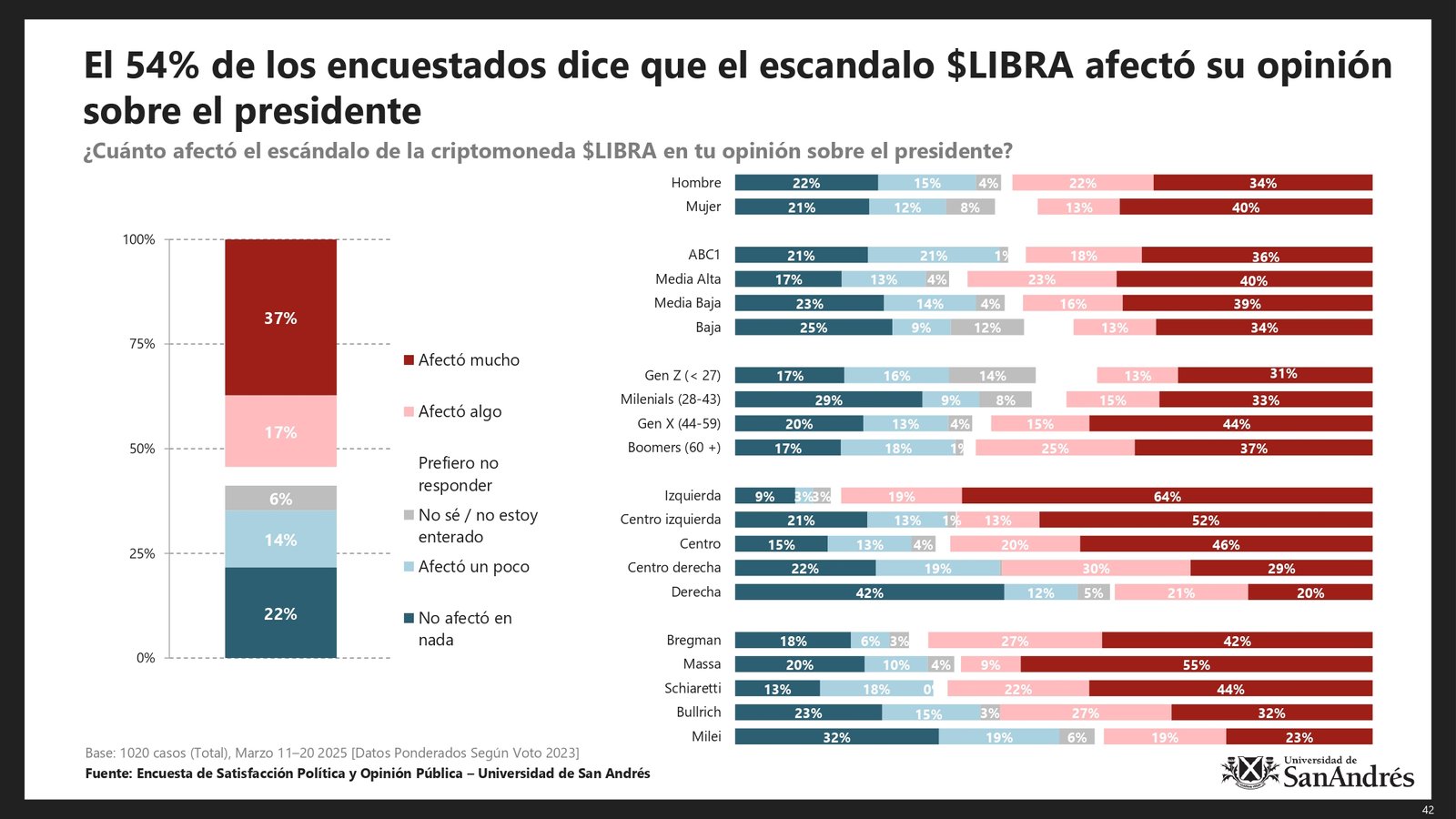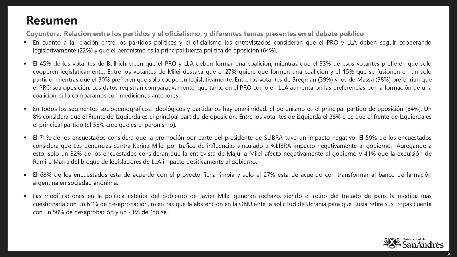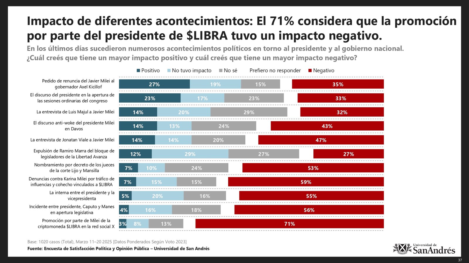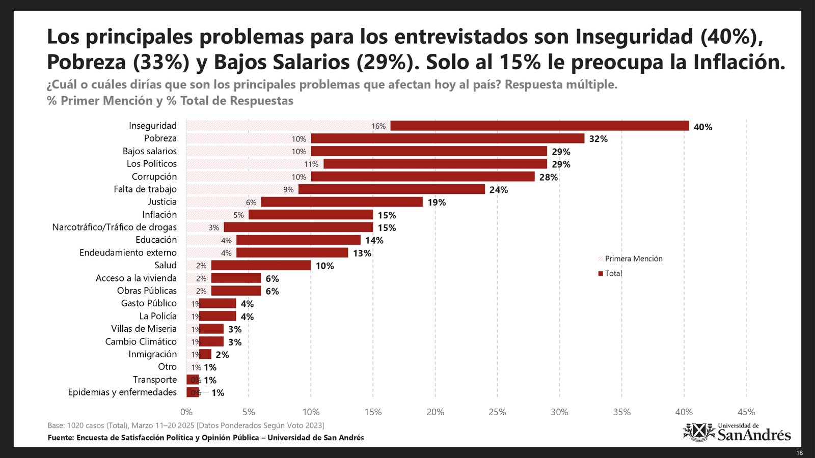 Un estudio de la Universidad de San Andrés muestra que Milei debe revertir un 61% de insatisfacción con su gobierno.