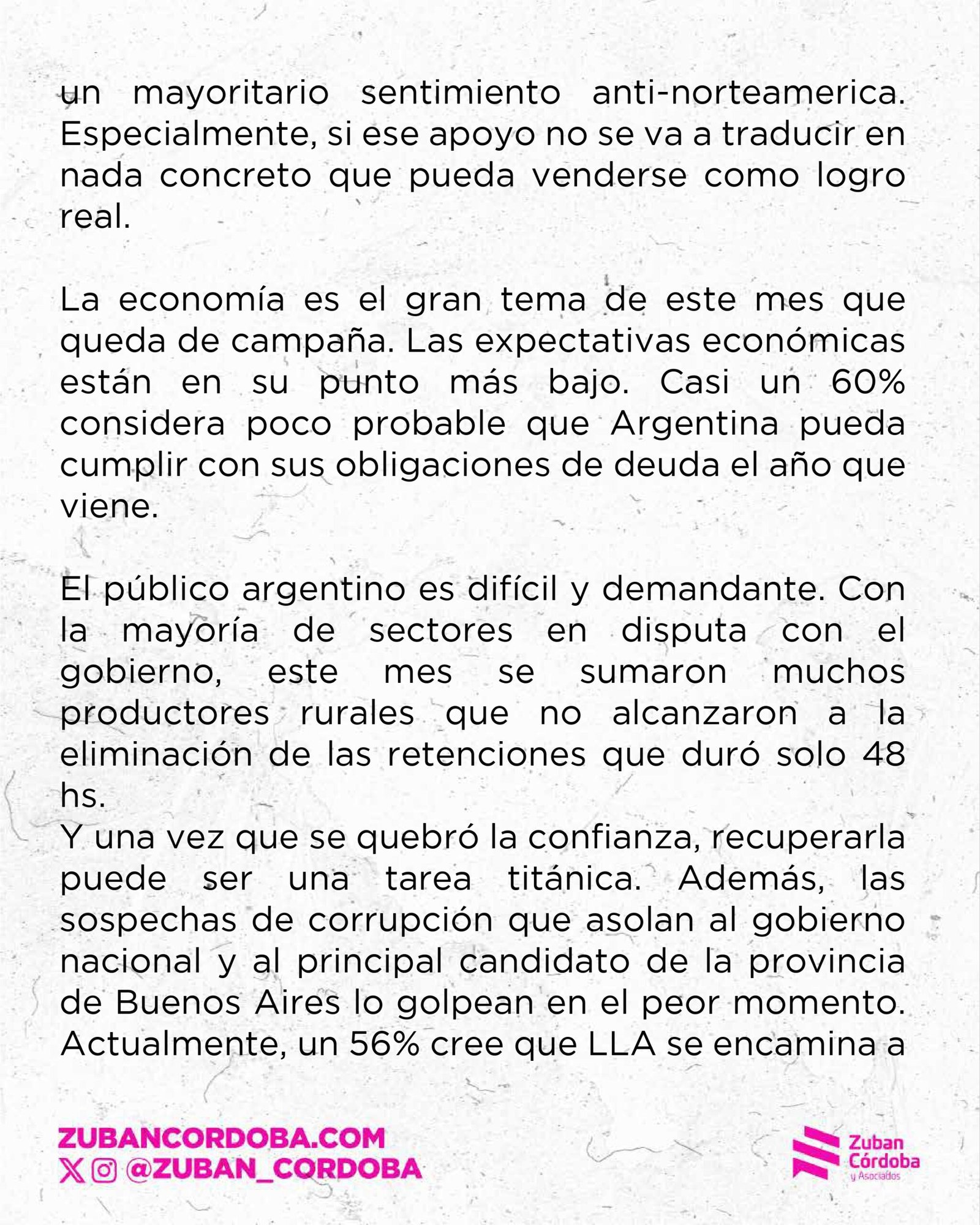 Una encuesta de Zuban Córdoba confirma que la mayoría de los argentinos rechaza el rescate de Donald Trump a Javier Milei y que también recela de la nueva irrupción de Mauricio Macri en el esquema de decisiones del gobierno.