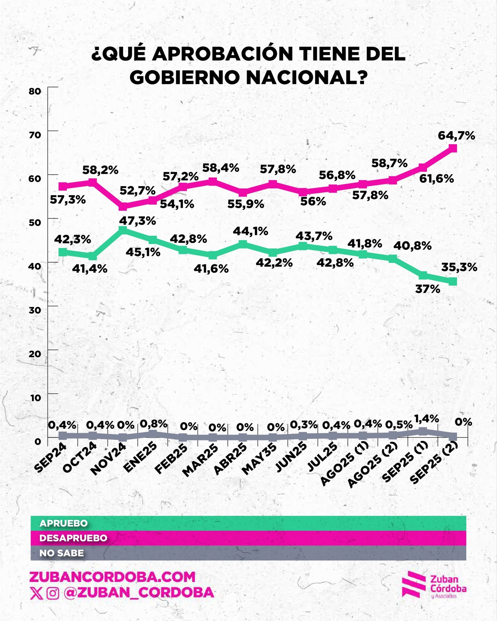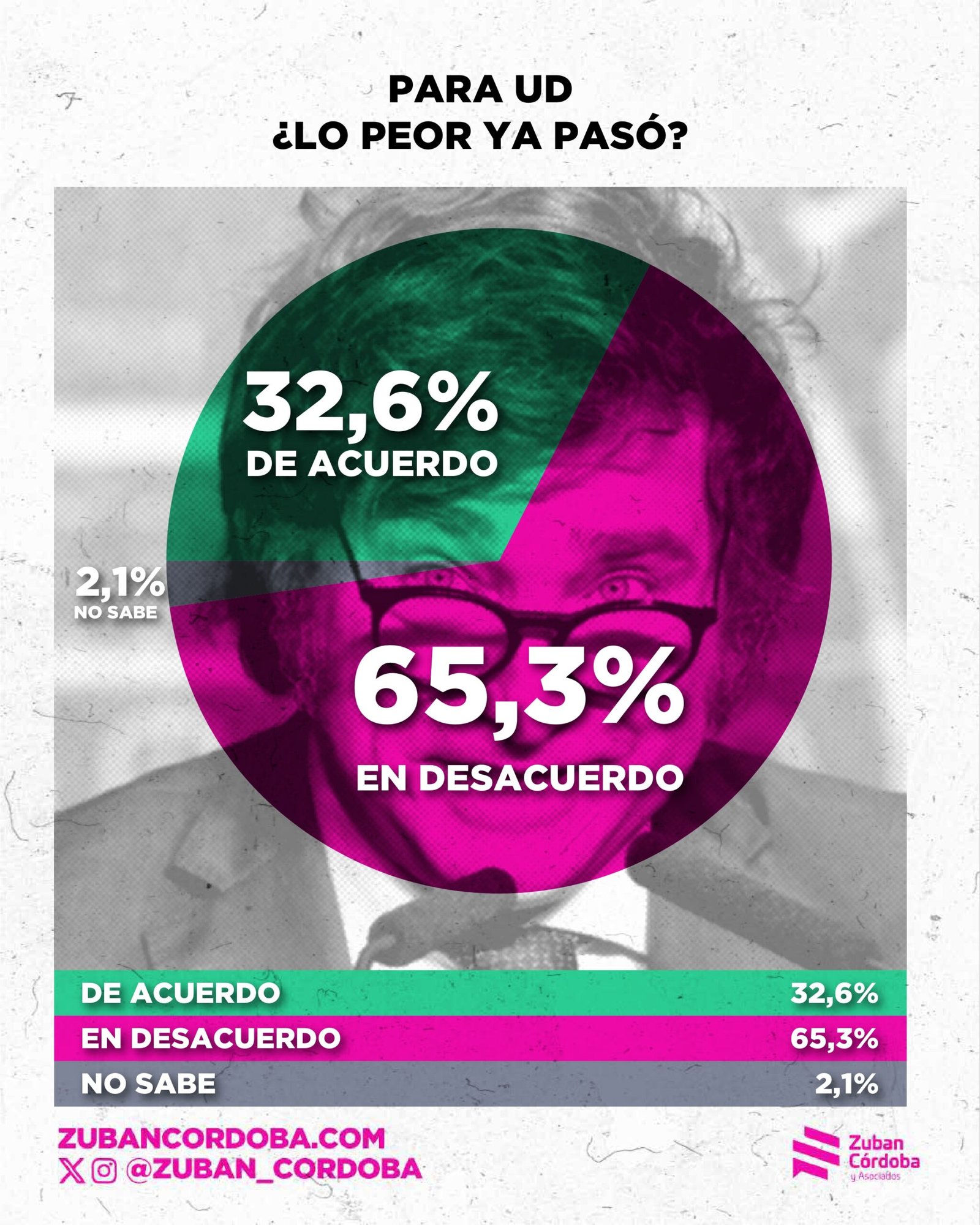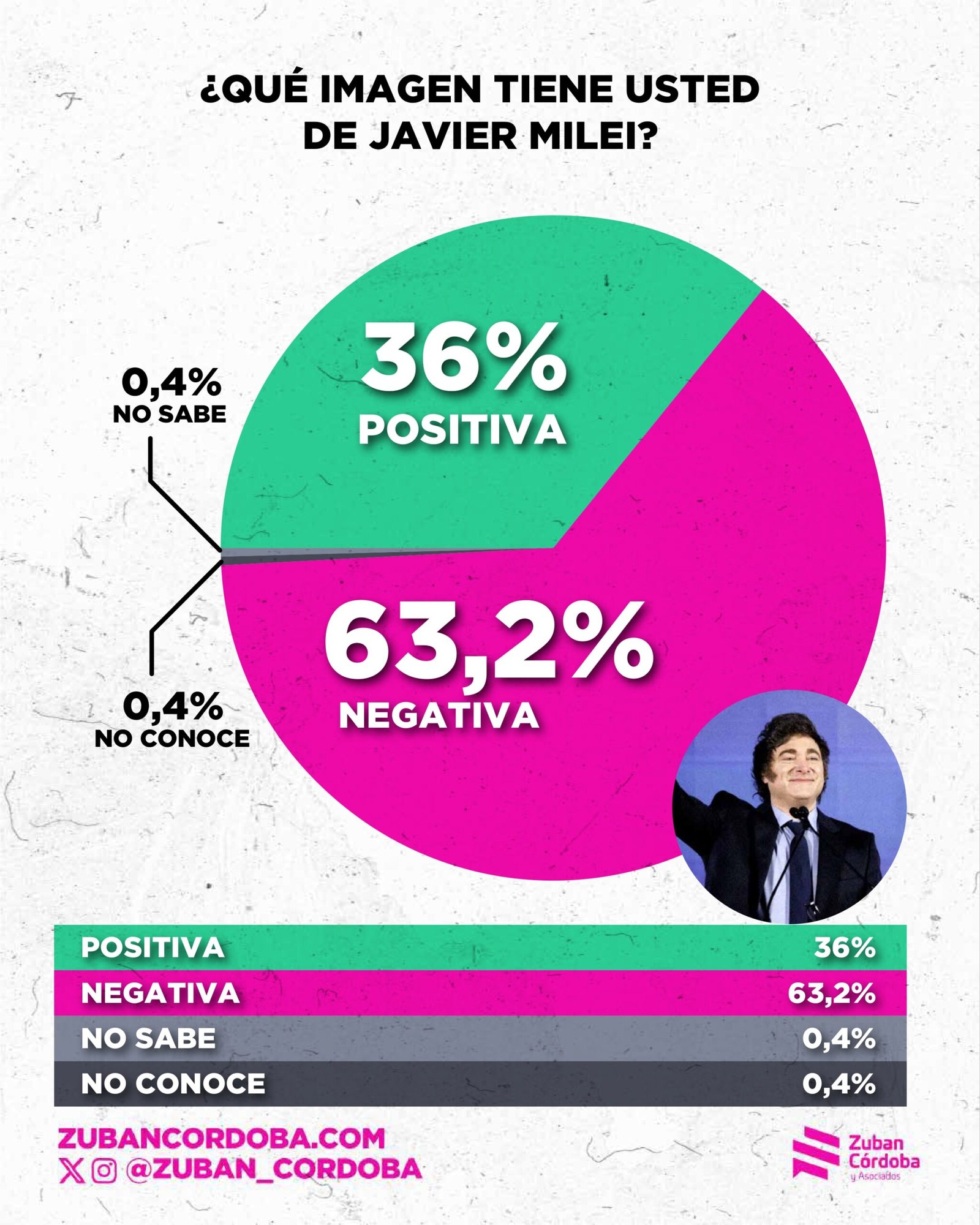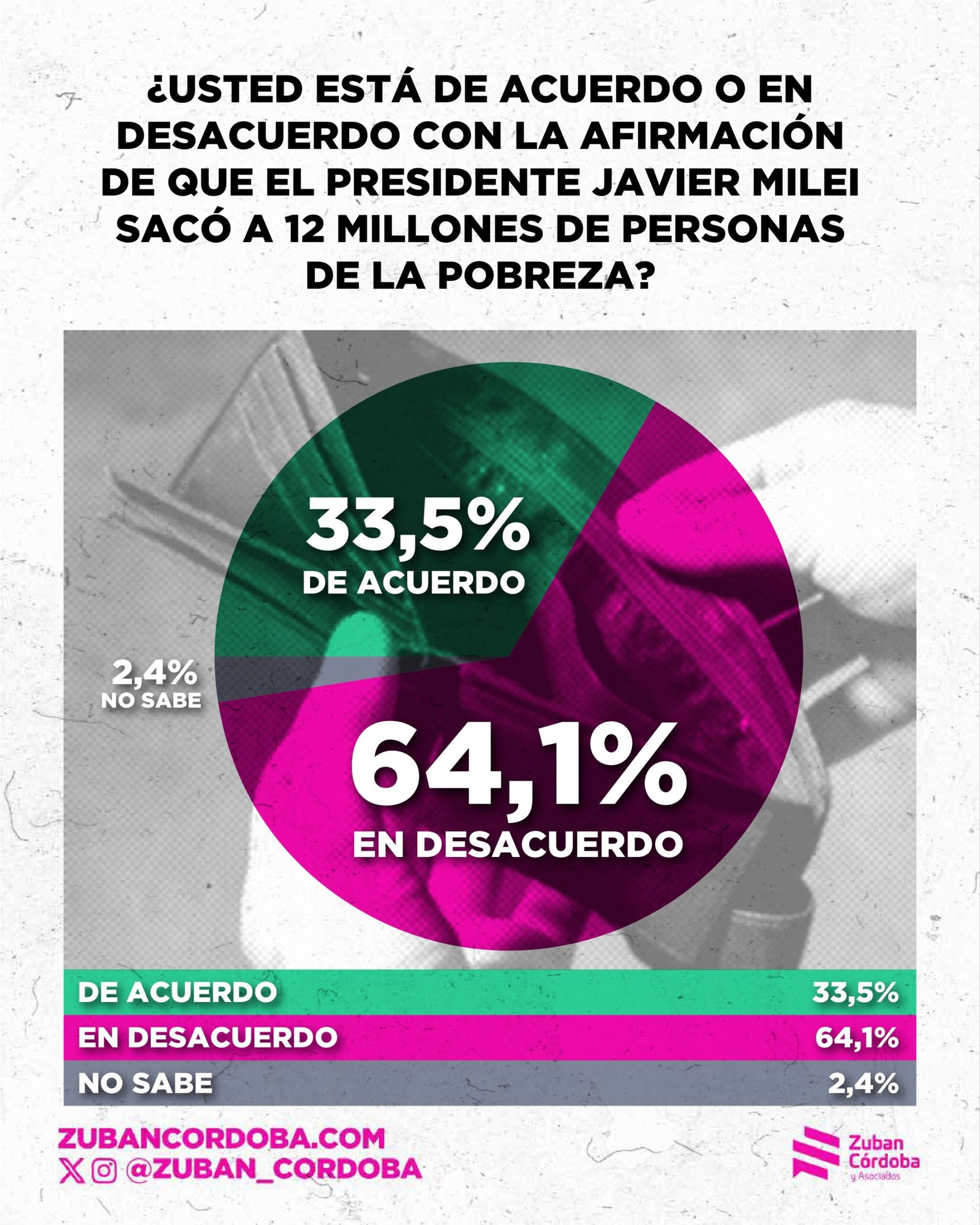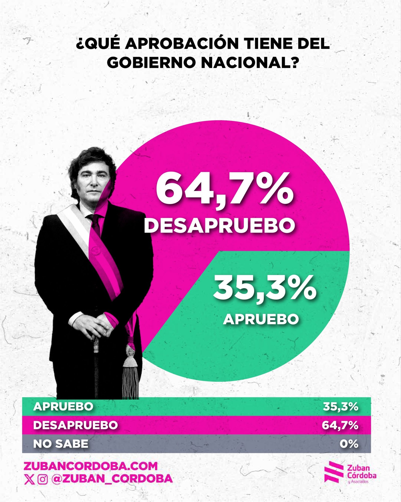 El informe de Zuban Córdoba revela otro dato de fuerte impacto para el gobierno: la aprobación de la gestión del libertario bajó al 35,3% y tiene un rechazo del 64,7%.