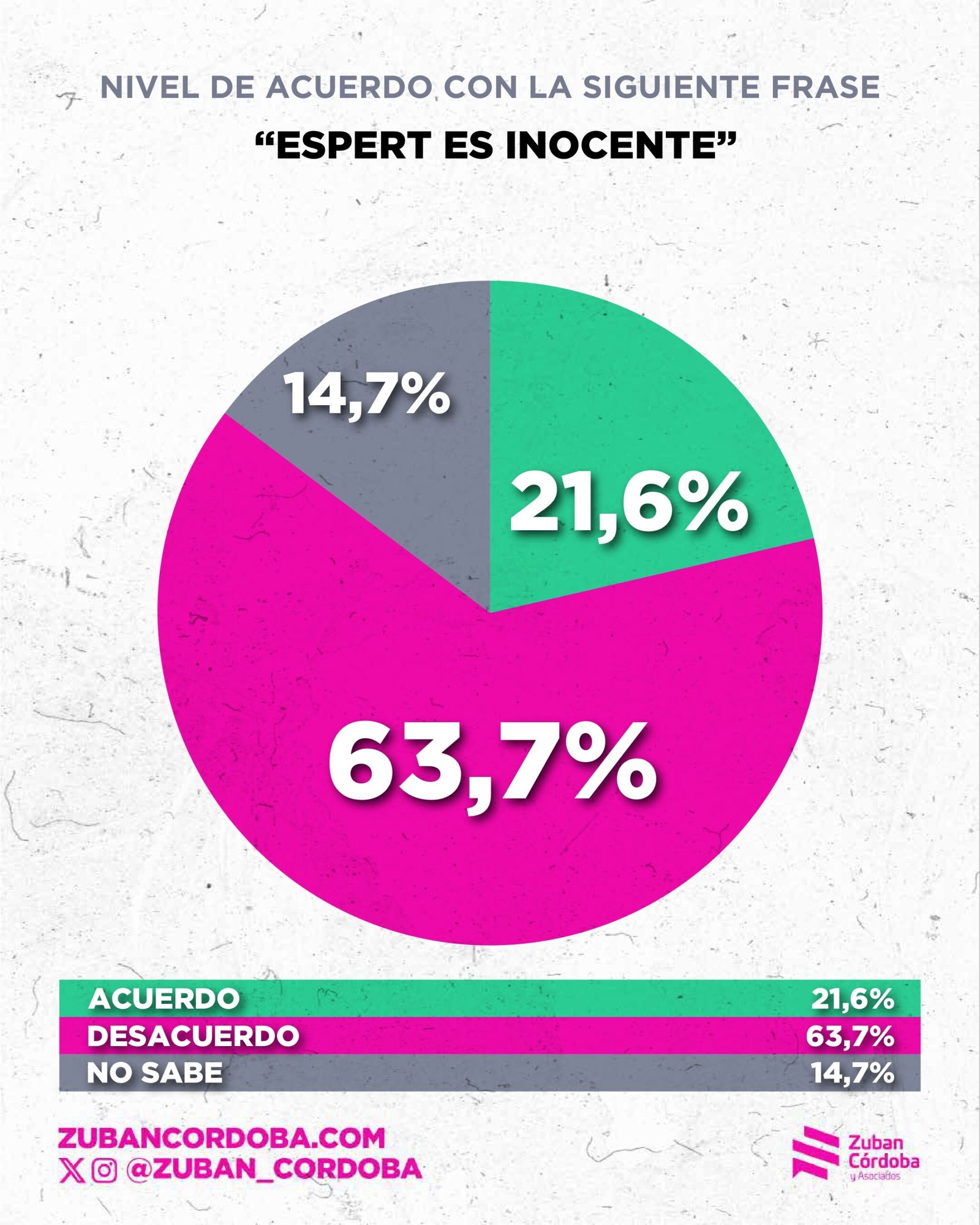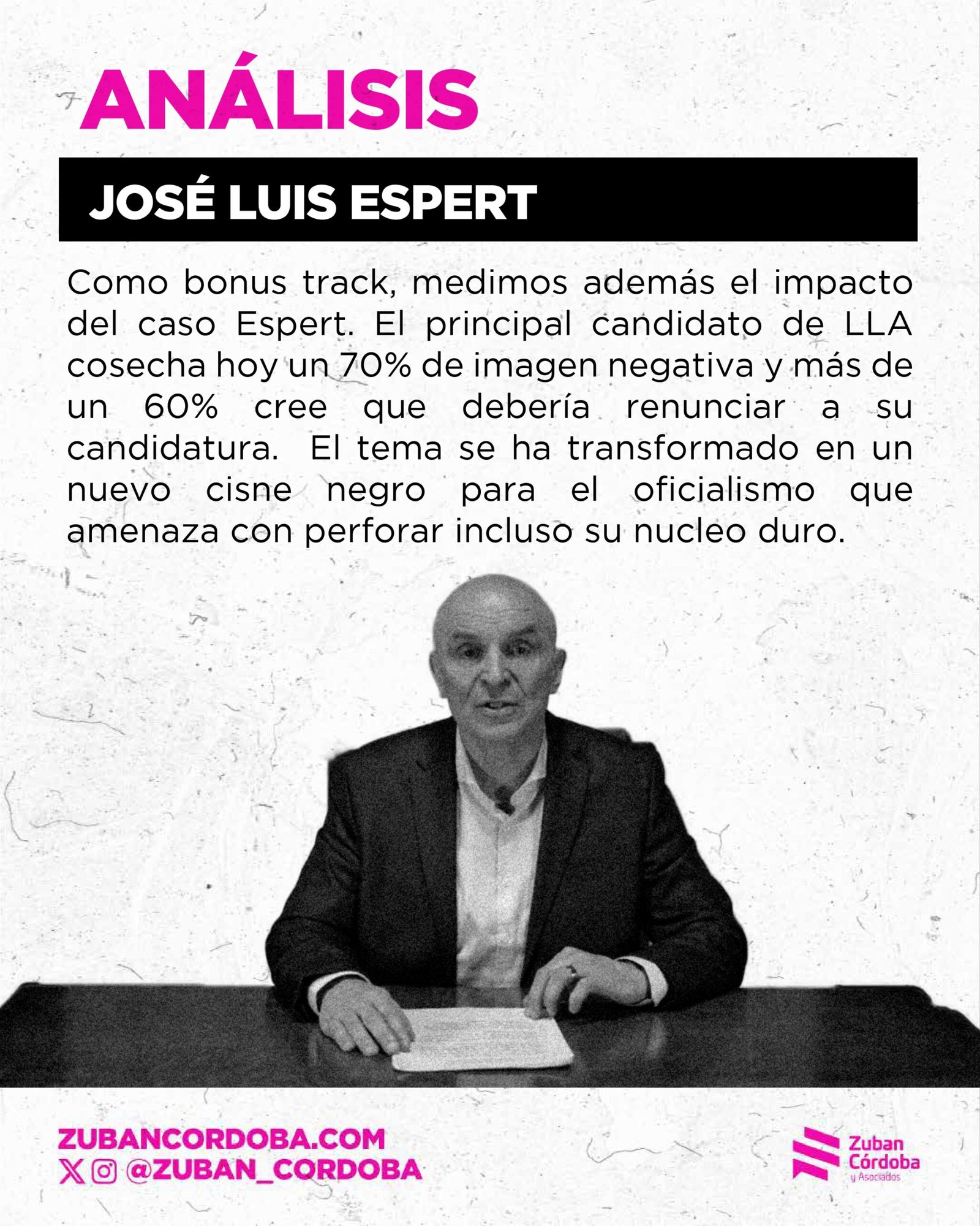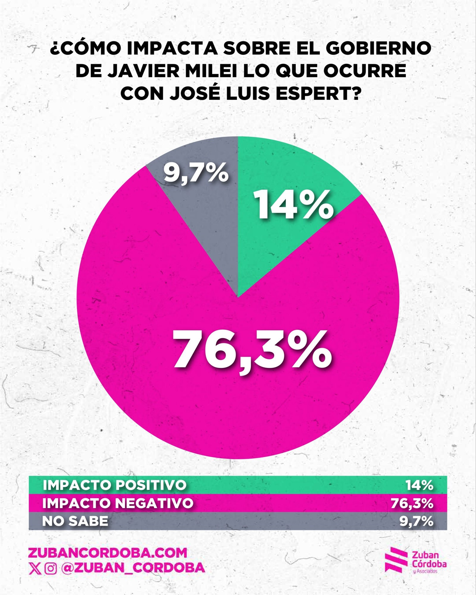 También hay un apartado lapidario sobre el caso Espert. El 76,3% cree que tiene un impacto negativo en el gobierno, sólo el 27,9% cree su defensa y el 62,9% cree que debería renunciar a su candidatura.