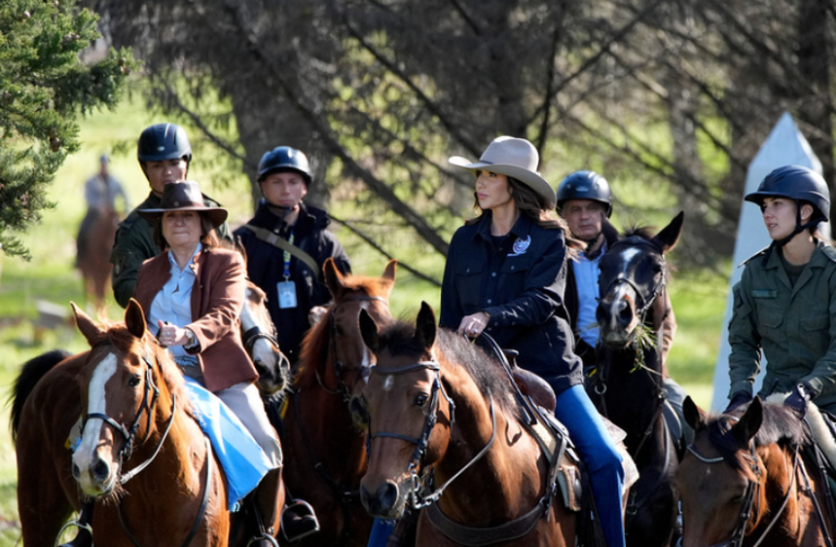 05 Página Foto portada: Piden interpelar a Patricia Bullrich por los acuerdos que firmó con Estados Unidos. Para conocer el contenido de los convenios en seguridad. Patricia Bullrich montando a caballo junto a la secretaria de Seguridad de Estados Unidos,…