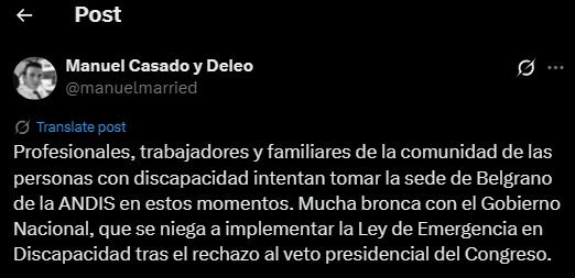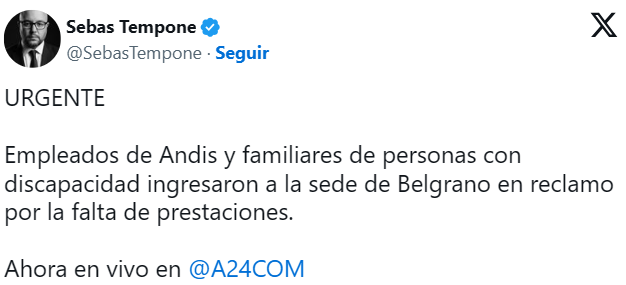 Un grupo de personas entró este viernes por la fuerza a las oficinas de la Agencia de Discapacidad (ANDIS) en el barrio porteño de Belgrano para pedir hablar con las autoridades y reclamar contra los recortes en el área.