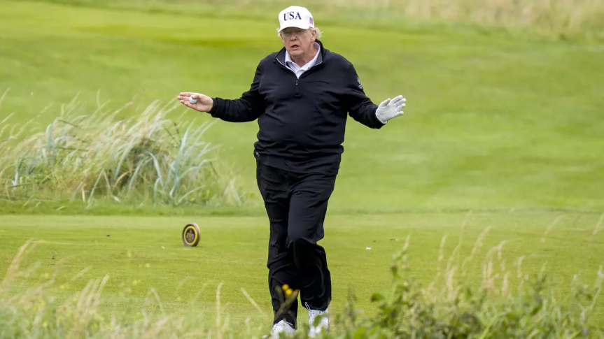 11/08/2025.- www.eldiarioar.com.- Por Adam Gabbatt.- Foto portada: “Le cuesta desarrollar una idea”, las erráticas comparecencias públicas de Trump vuelven a poner en duda su lucidez mental. Donald Trump jugando al golf en su campo de golf Trump Turnberry en South Ayrshire, durante su viaje privado de cinco días a Reino Unido. Imagen:  Jane Barlow/PA Wire/dpa /Europa Press.