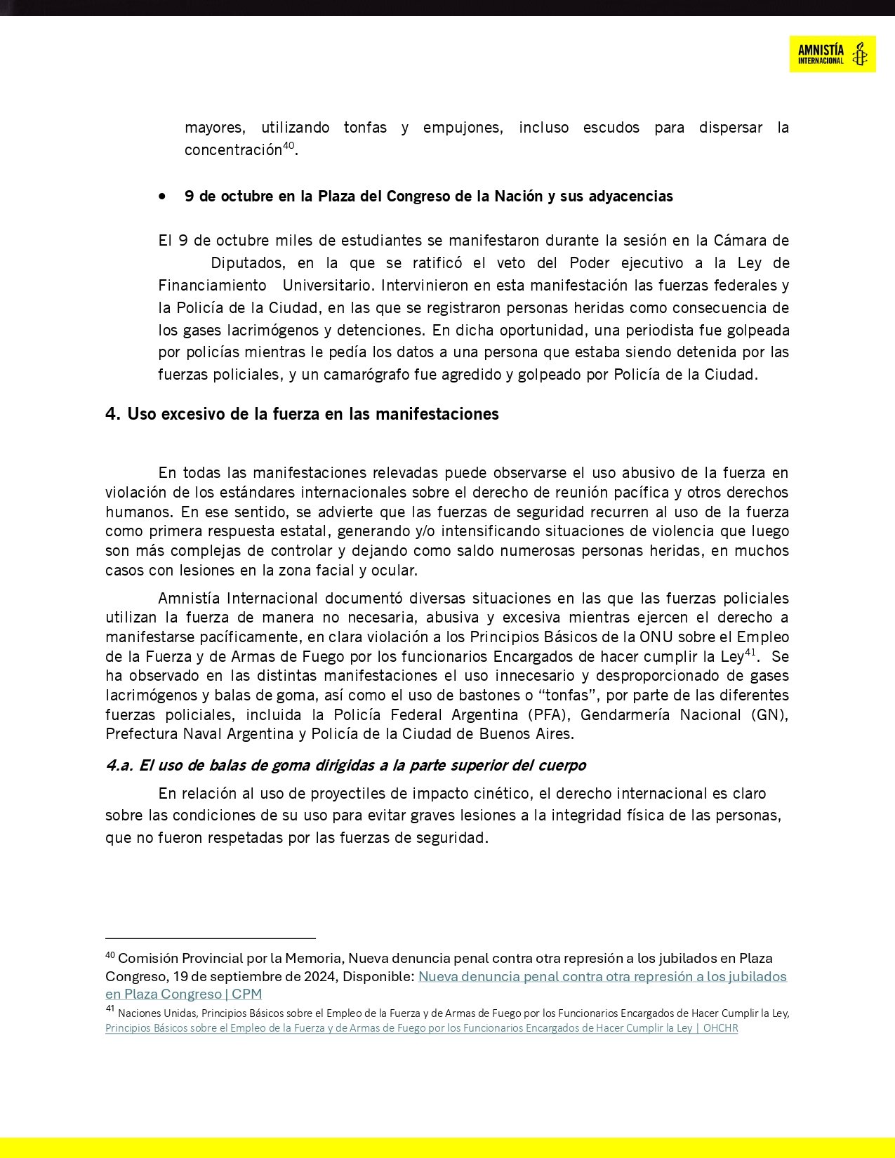 «Las balas de goma fueron dirigidas en múltiples ocasiones a la parte superior del cuerpo, contraviniendo las recomendaciones internacionales que estipulan que deben apuntarse a las extremidades inferiores»