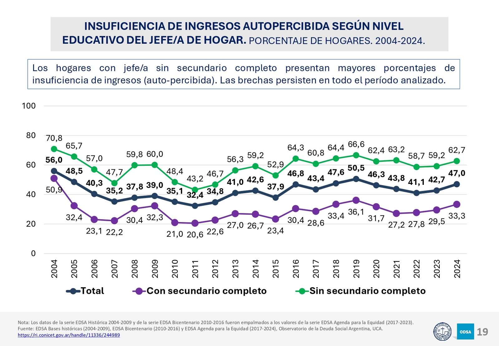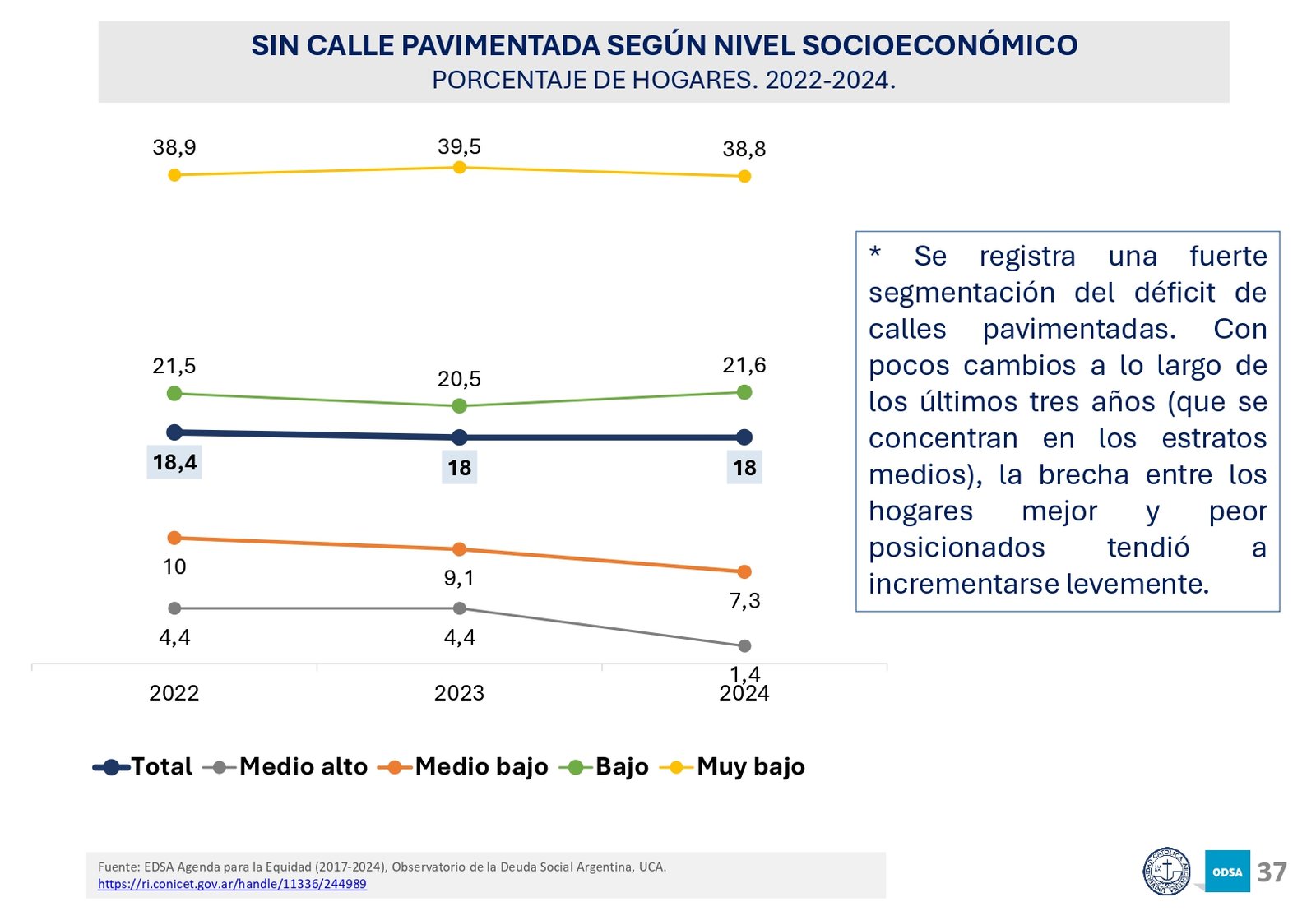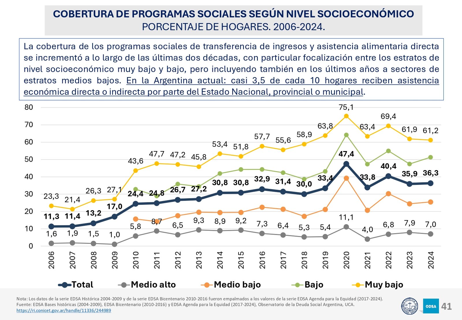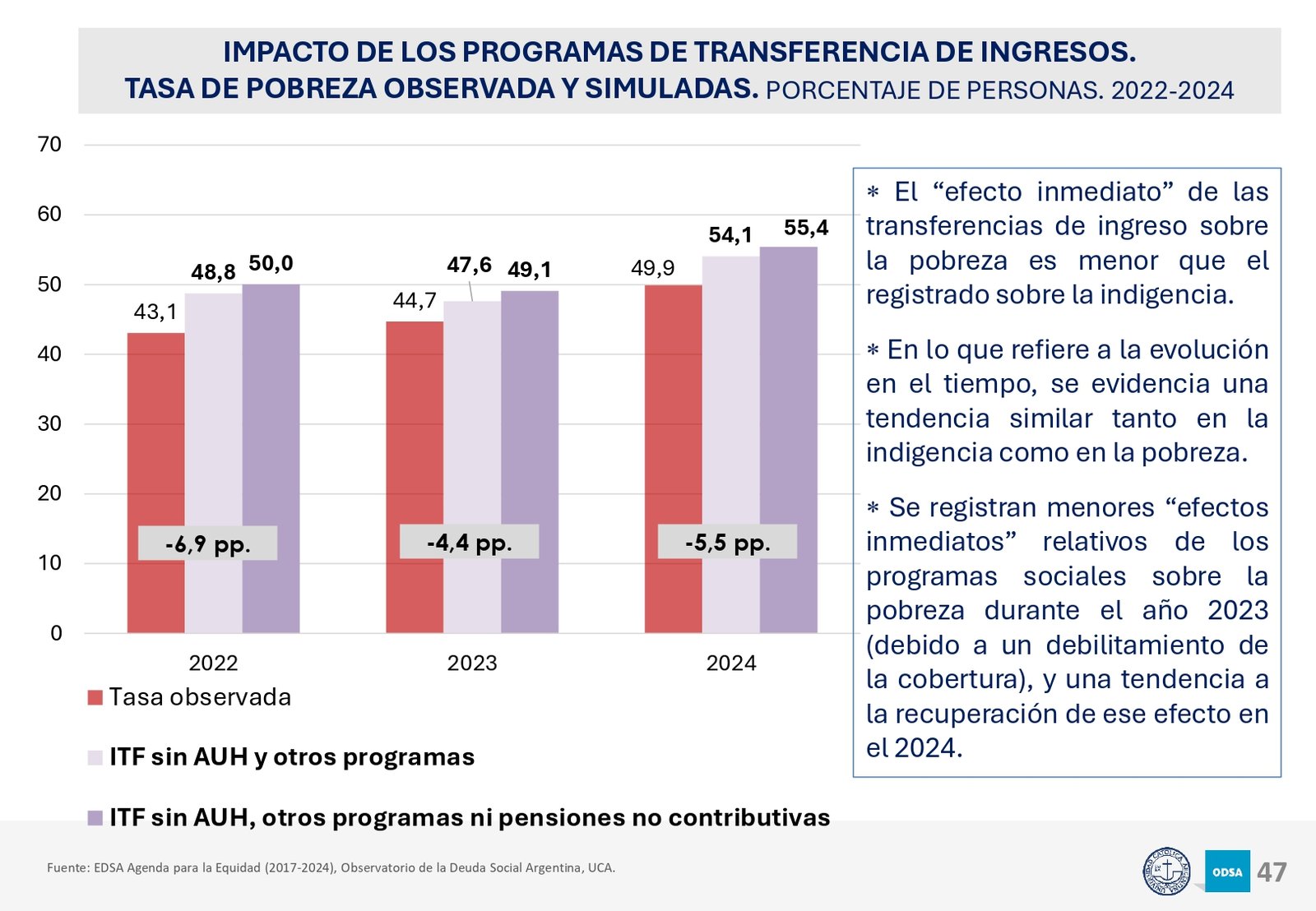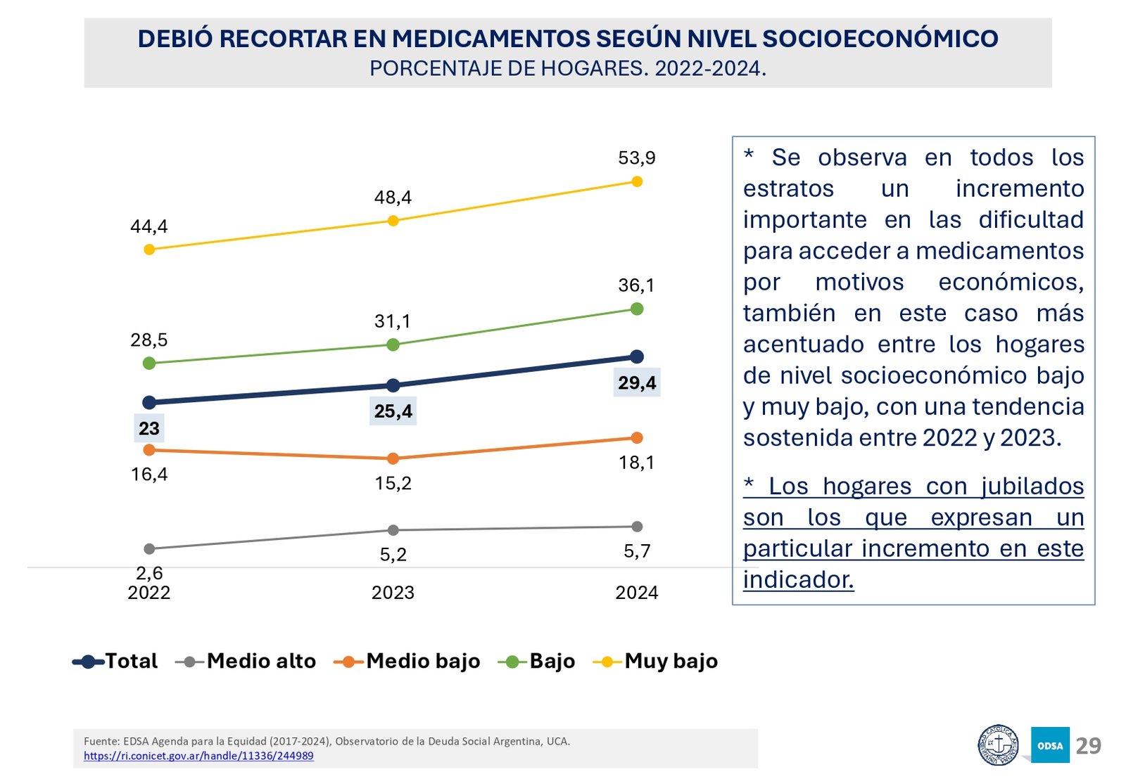 Además, el informe señala que el acceso a programas de asistencia social ha crecido en los últimos 20 años, pero la brecha entre los hogares de menores recursos y los sectores medios y altos sigue aumentando. En particular, los hogares con niños son los más afectados, con una tasa de pobreza significativamente mayor a la del resto de la población.