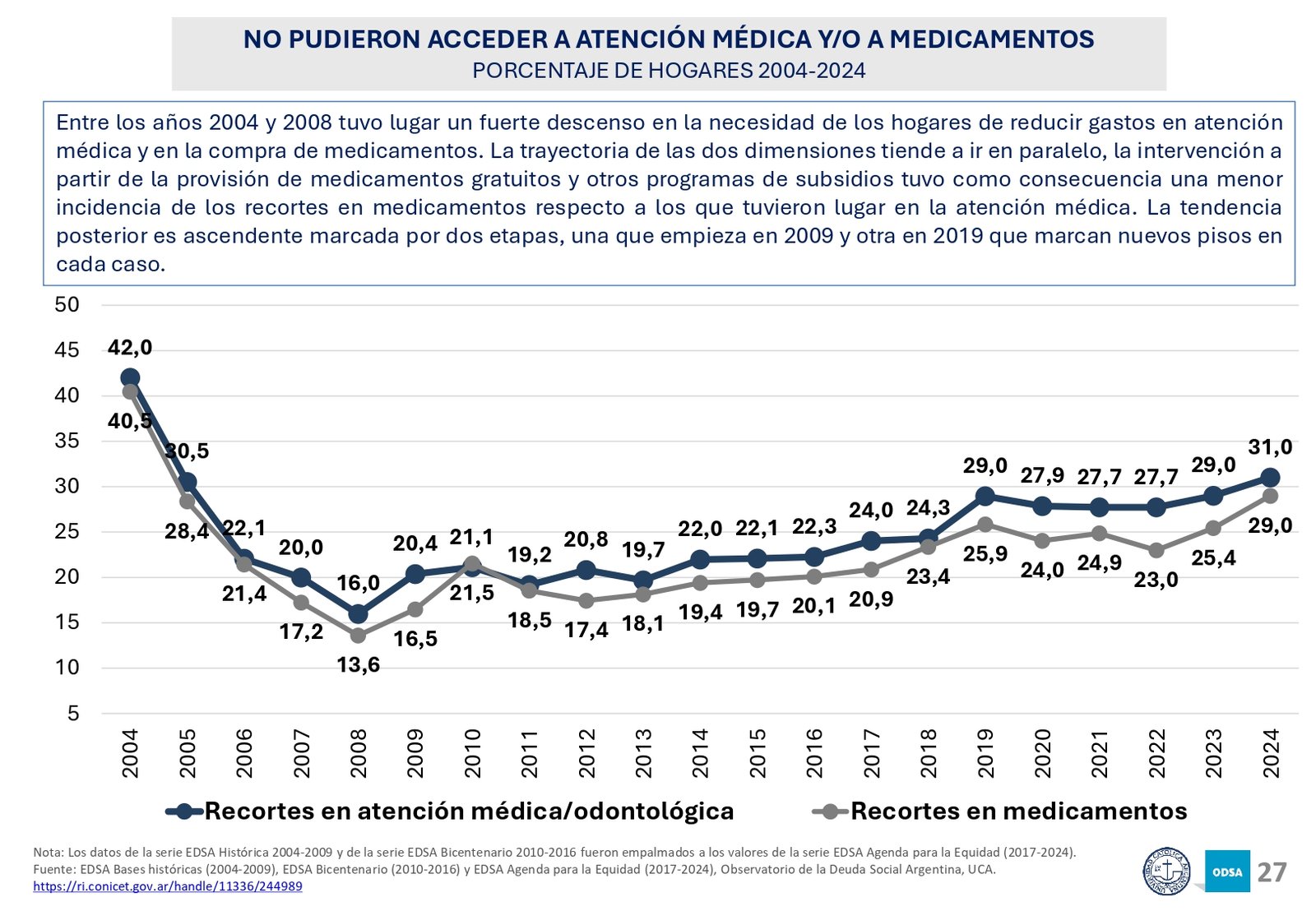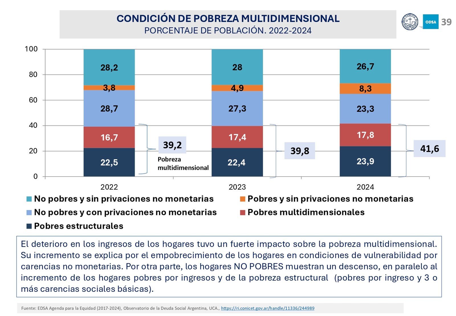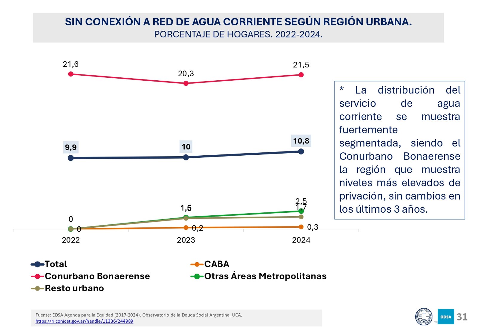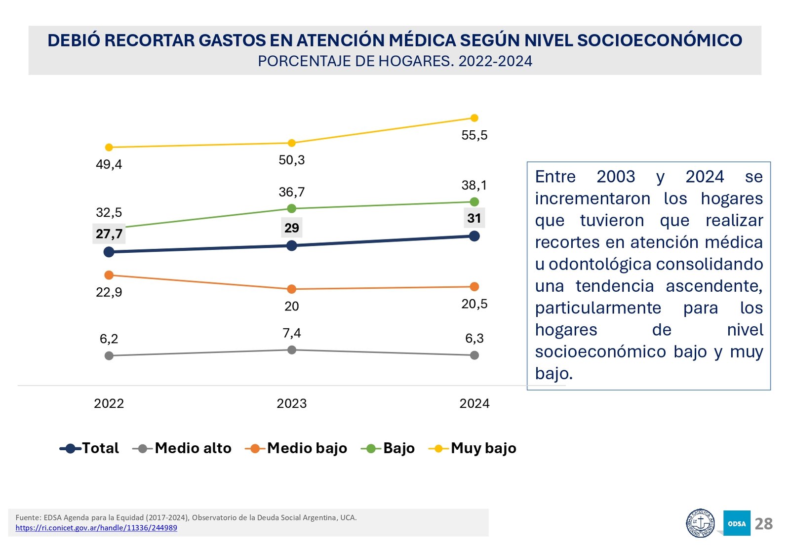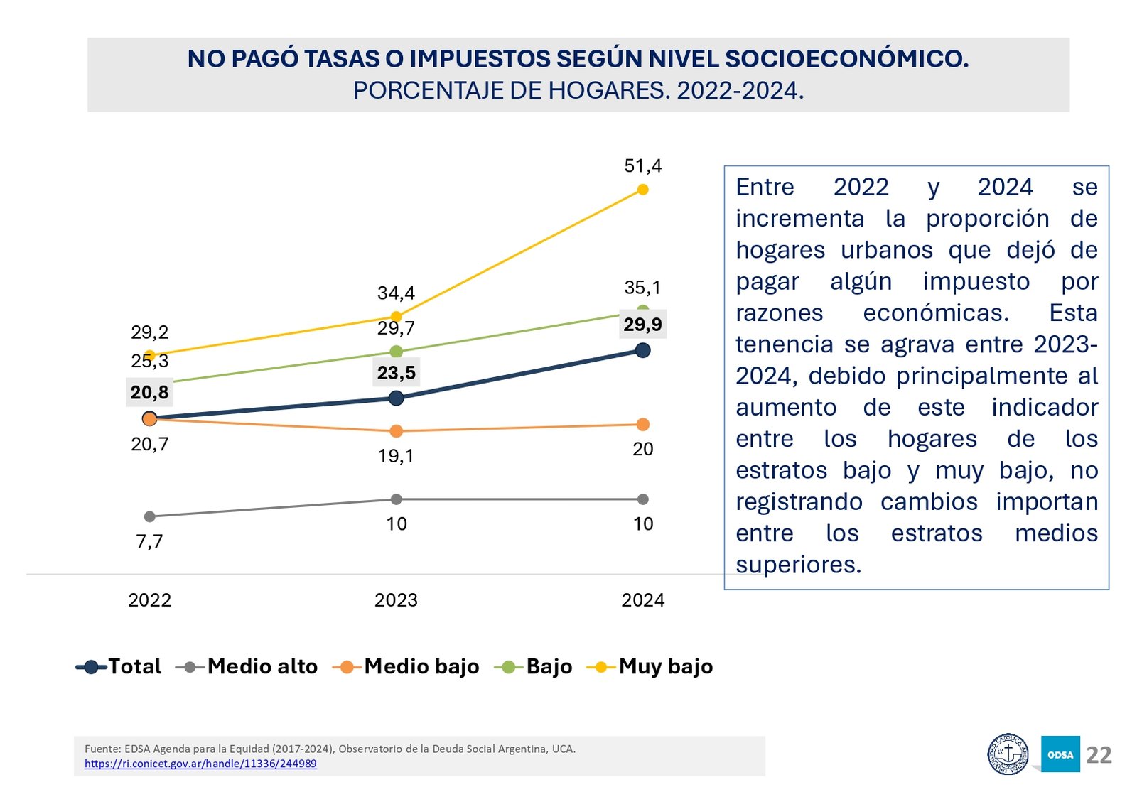 Además, el informe señala que el acceso a programas de asistencia social ha crecido en los últimos 20 años, pero la brecha entre los hogares de menores recursos y los sectores medios y altos sigue aumentando. En particular, los hogares con niños son los más afectados, con una tasa de pobreza significativamente mayor a la del resto de la población.