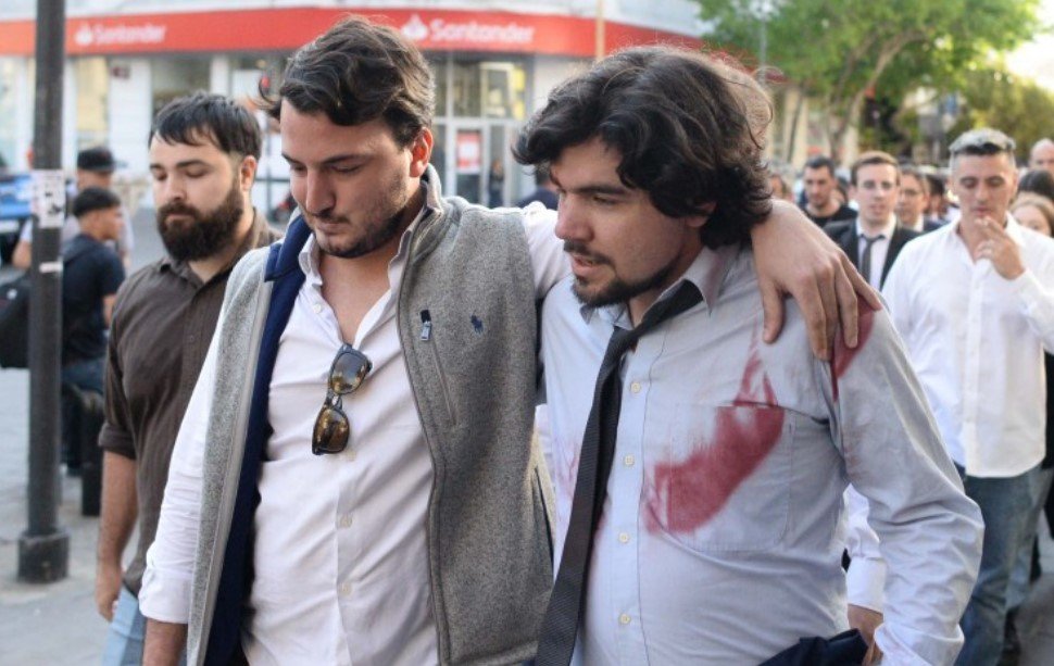 «Hijos de puta, hijos de puta» coreaban los estudiantes que los esperaban en la puerta de la sede con pancartas y redoblantes, apenas vieron llegar a los libertarios.