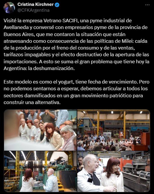 Fernández de Kirchner había quedado como candidata única después de que la Justicia Electoral hiciera lugar a la impugnación de la lista del gobernador de La Rioja, Ricardo Quintela, por no reunir los avales necesarios para participar de esa compulsa.