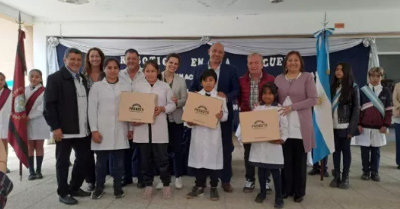 Los ministros de Educación, Cultura, Ciencia y Tecnología y de Economía y Servicios Públicos, Cristina Fiore y Roberto Dib Ashur, participaron en la escuela Camino del Inca de la municipalidad de Vaqueros, de la entrega de kits de robótica a alumnos de 6to y 7mo grado de esa institución. También participaron, el intendente de Vaqueros, Daniel Moreno y la subsecretaria de Economía del Conocimiento, Lorena Trovato.
