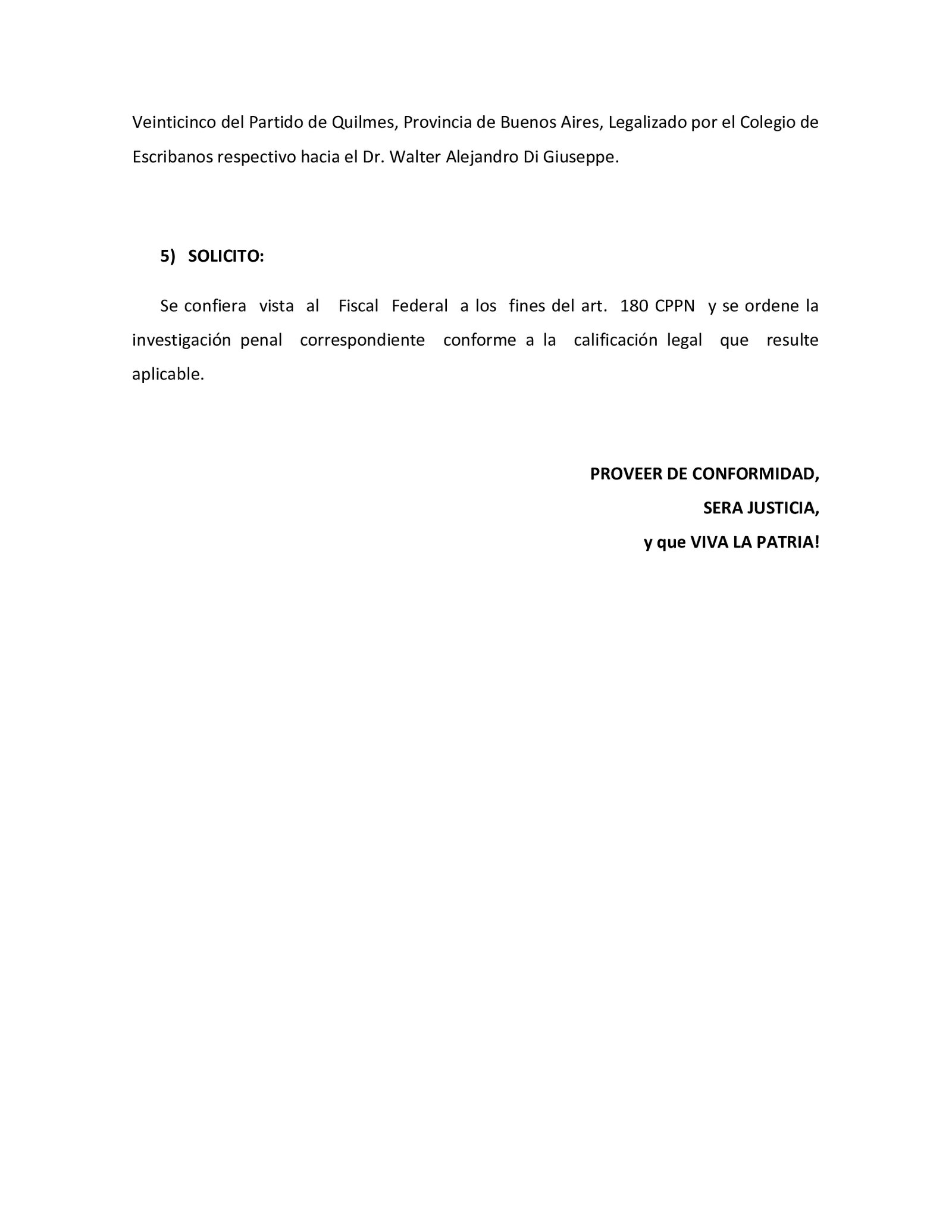 La presentación la firma el veterano Ramón Cayetano Robles de la Confederación de Veteranos que detalles que es «por hechos que «prima facie » podrían constituir los delitos de Violación de los Deberes de Funcionario Público, Abuso de Autoridad y Traición a la Patria; conforme arts. 248 y ss. y 214 ss. y concordantes del Código Penal».
