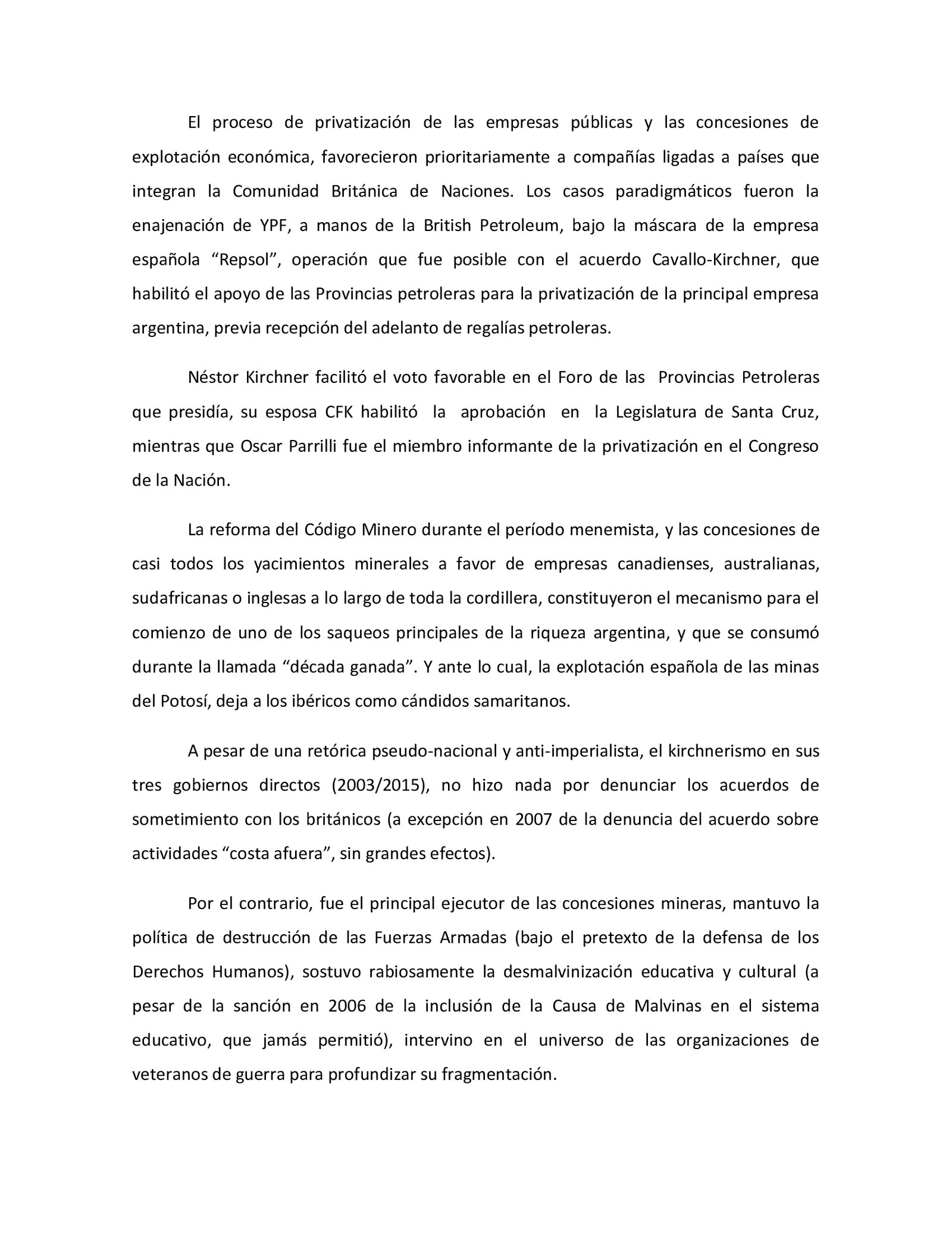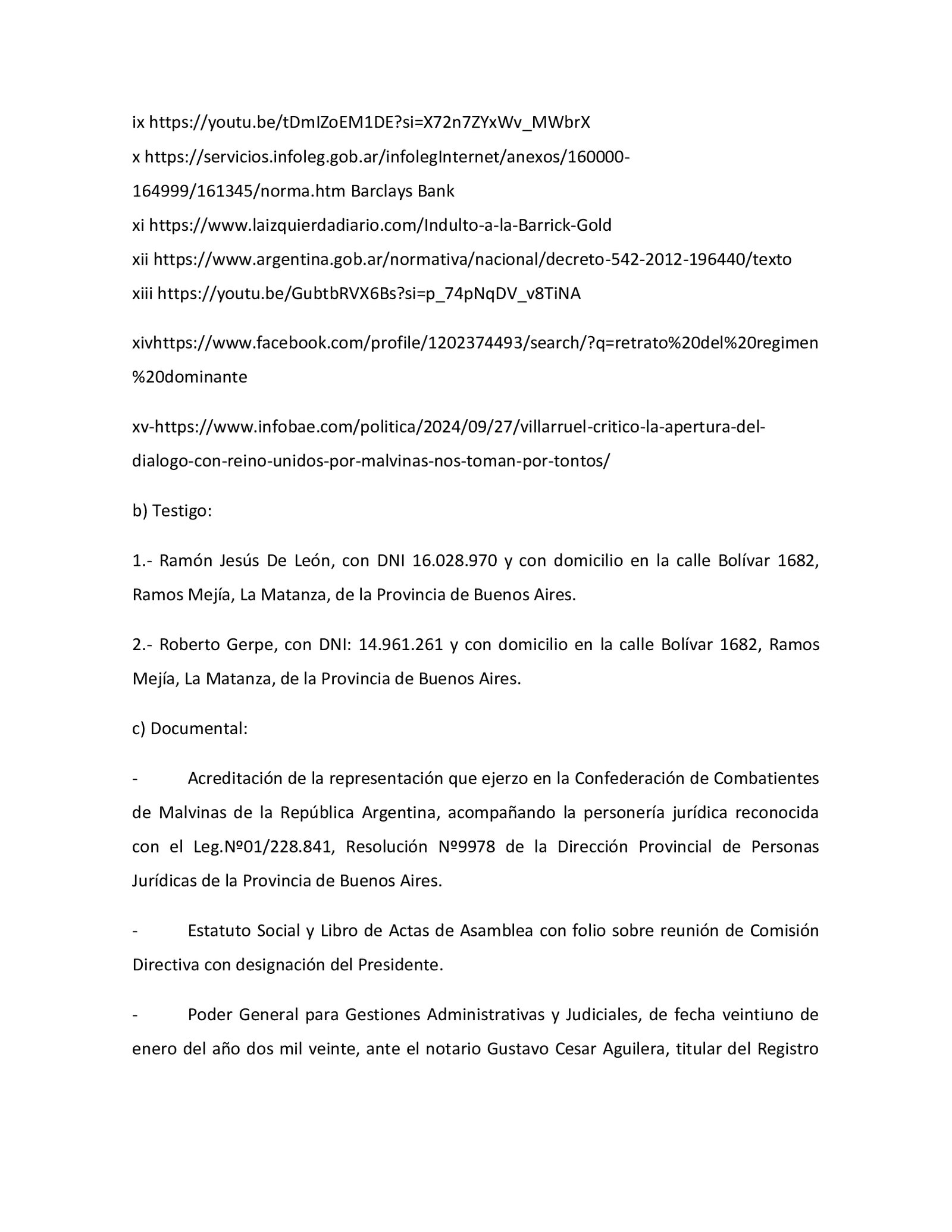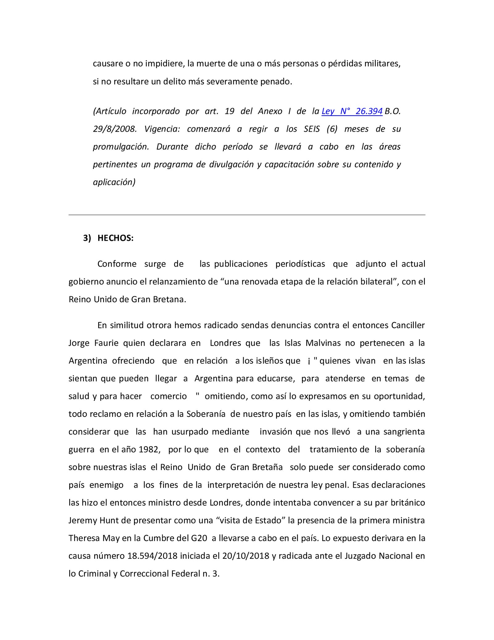 La presentación la firma el veterano Ramón Cayetano Robles de la Confederación de Veteranos que detalles que es «por hechos que «prima facie » podrían constituir los delitos de Violación de los Deberes de Funcionario Público, Abuso de Autoridad y Traición a la Patria; conforme arts. 248 y ss. y 214 ss. y concordantes del Código Penal».