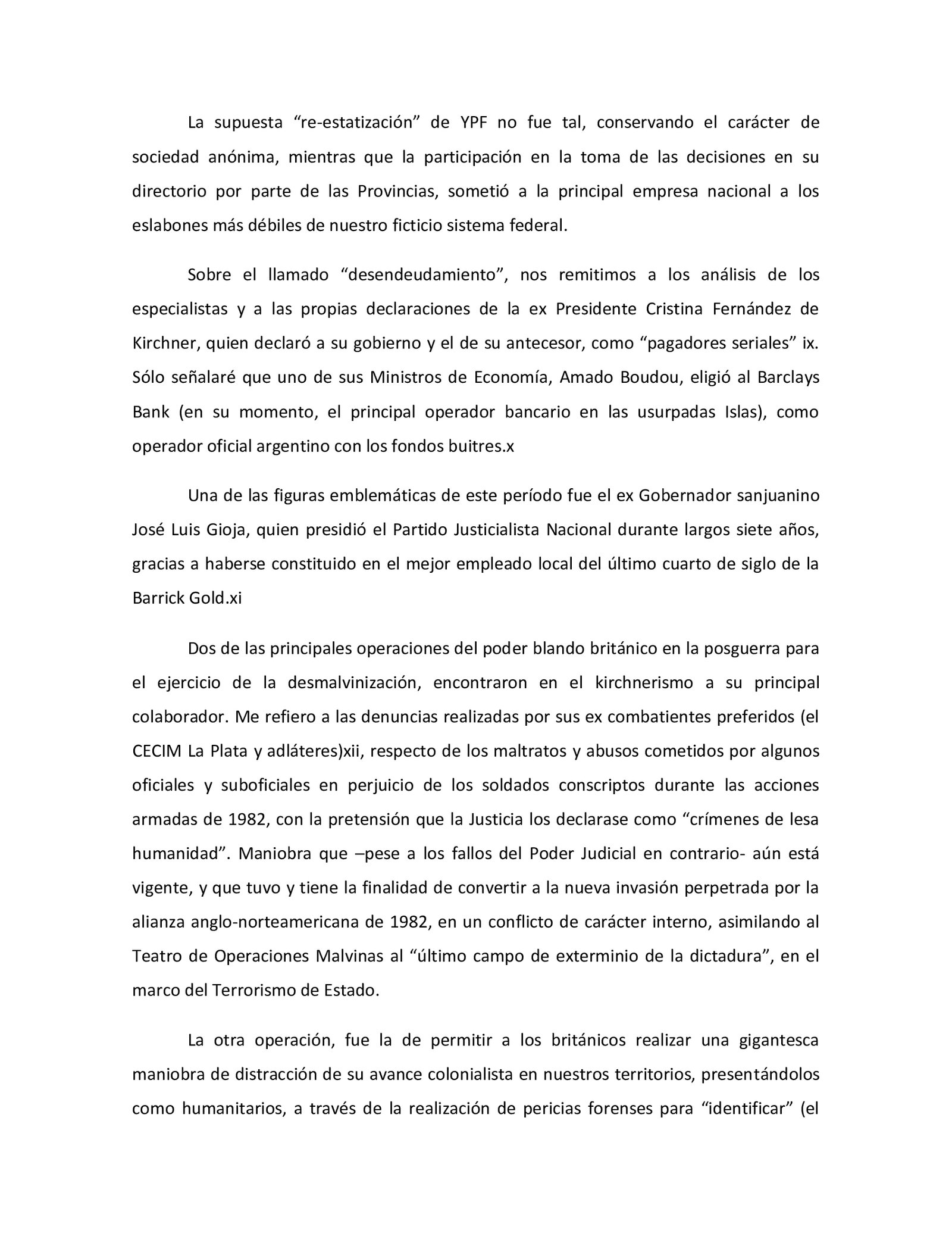 La denuncia indica que los delitos eventuales de Mondino son por atentar contra la seguridad nacional y «será reprimido con reclusión o prisión de diez a veinticinco años o reclusión o prisión perpetua».