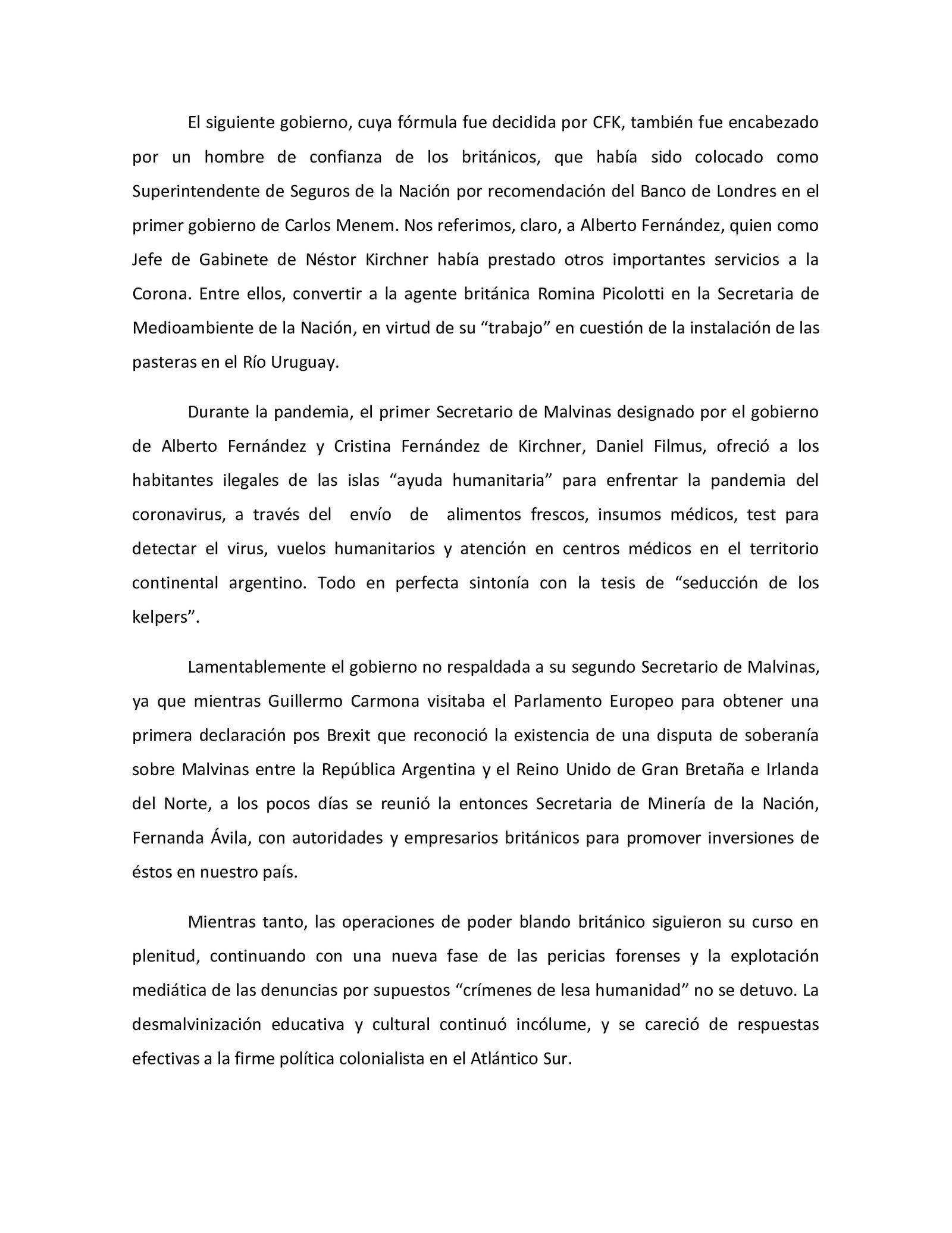 Fuentes diplomáticas reconocieron a LPO que el gobierno está vaciando el espacio y echó a «figuras importantes por no estar alienados con el proceso de acercamiento a Reino Unido».