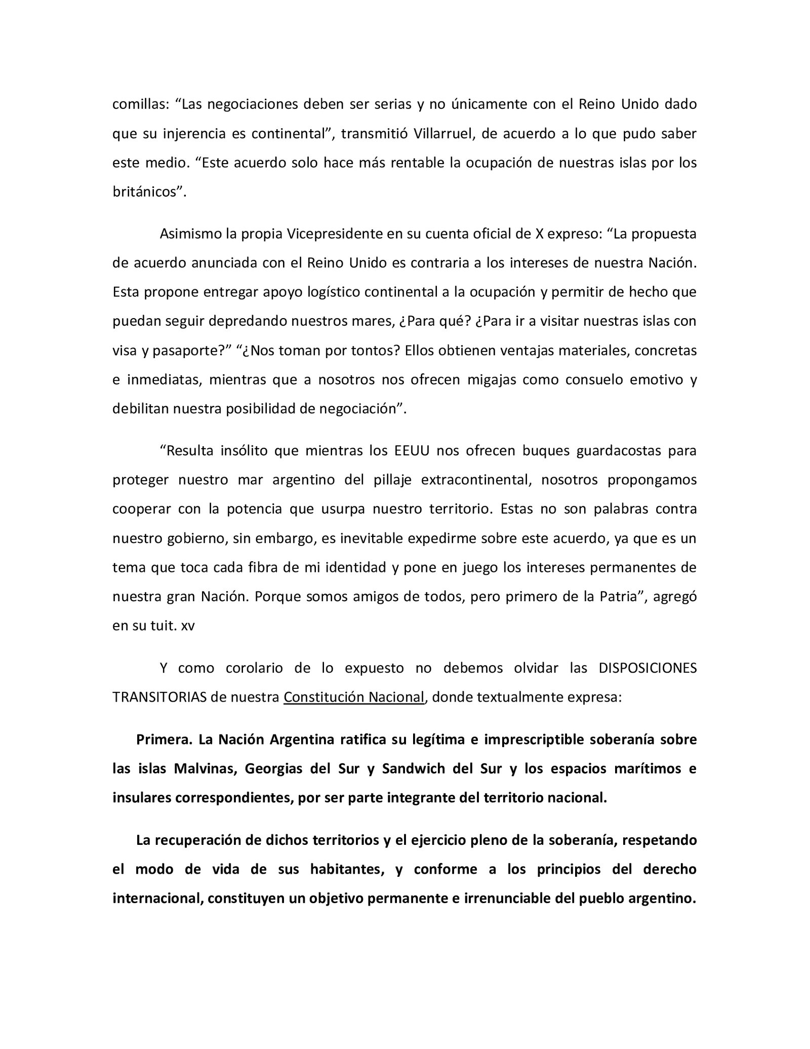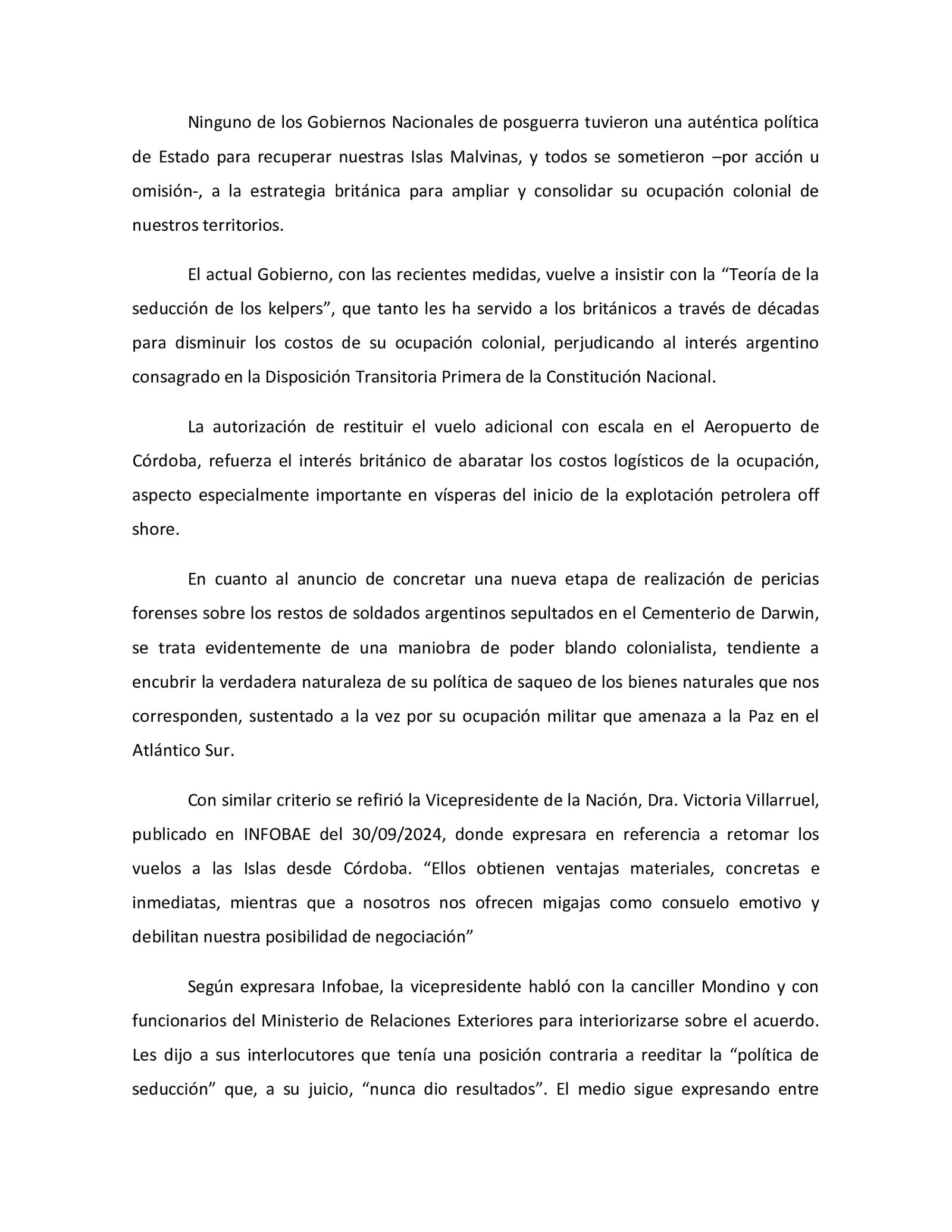 LPO reveló en exclusivo que hay dos elementos que genera ruido y mucho enojo respecto de la causa Malvinas. La primera es la intención de acercarse a Reino Unido para lograr una negociación parecida a la devolución del territorio de Chagos a la Isla Mauricio que entusiasmó a Mondino o el caso de Hong Kong con China a cambio de una cantidad de concesiones como la explotación petrolera, pesca, desarrollo militar o los vuelos que le faciliten la logística y generó la indignación de la vicepresidenta.